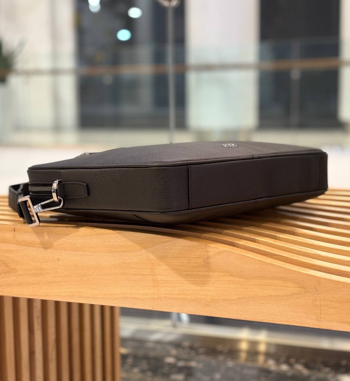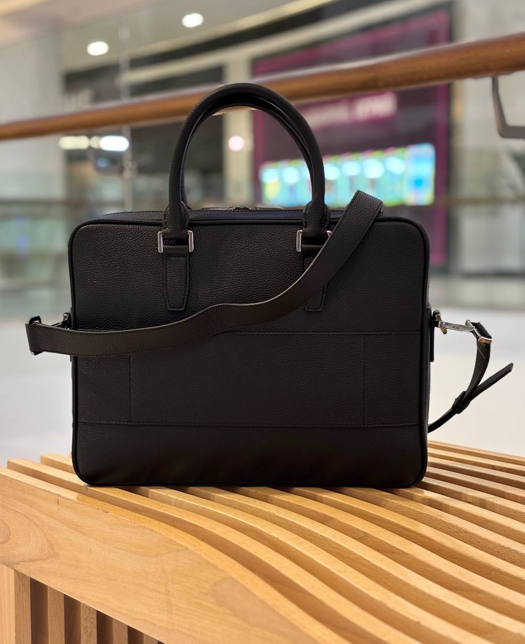 Чёрный кожаный портфель — сдержанная элегантность для деловой жизни: зернистая кожа, аккуратная фурнитура и продуманное внутреннее пространство для документов и ноутбука.