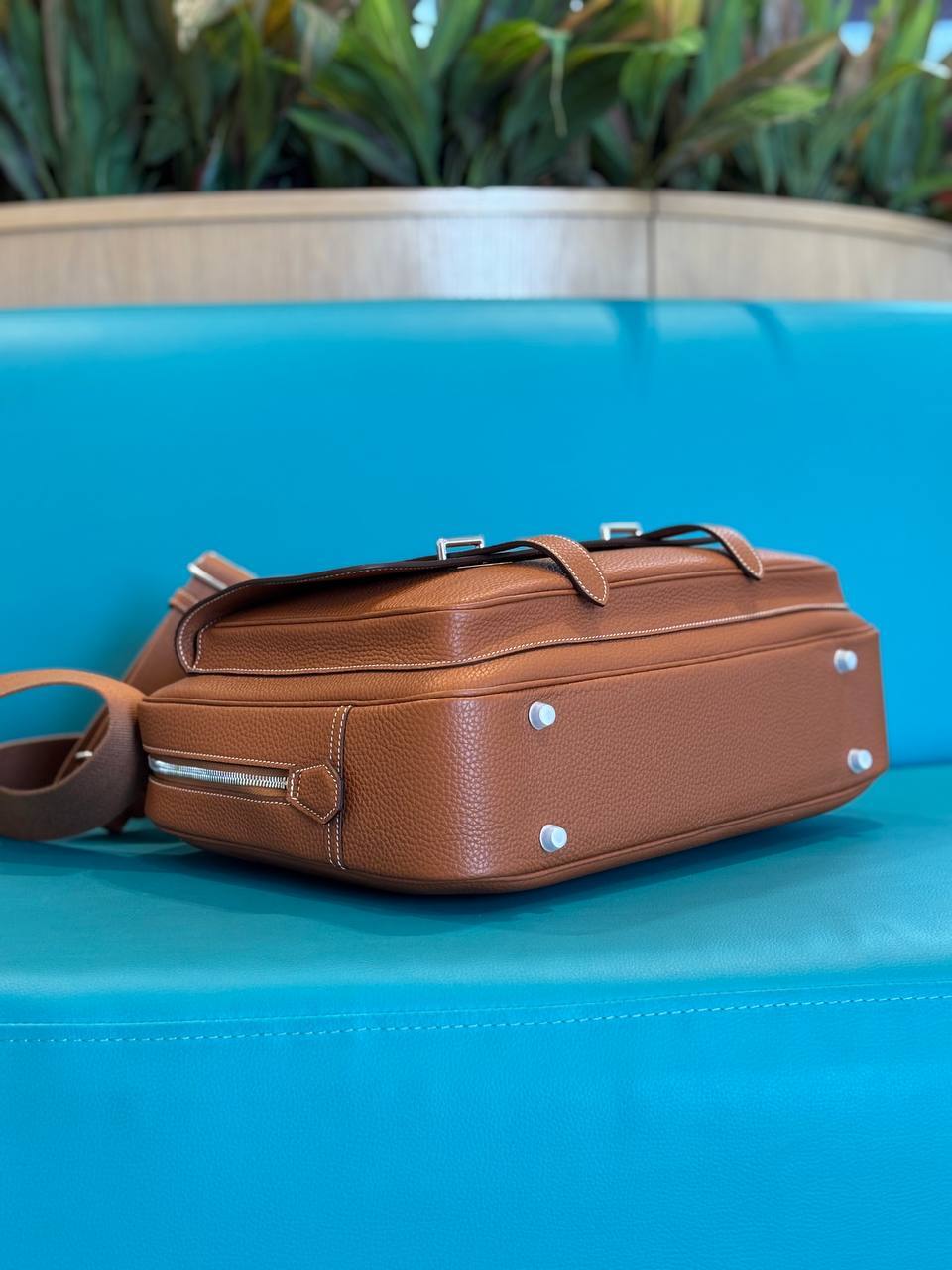 Кожаная сумка-портфель в классическом стиле с фактурой под зернистую кожу. Коричневый цвет, металлическая фурнитура, двойные ремешки с пряжками. Идеальна для делового образа.