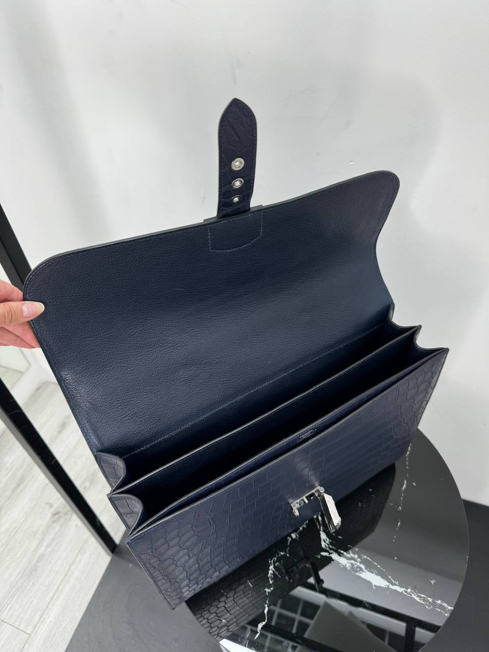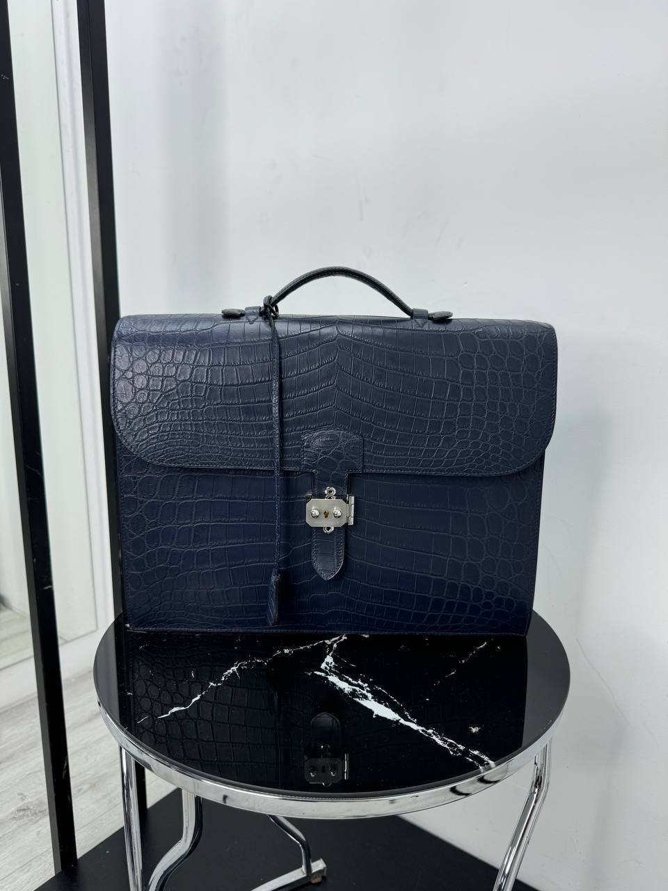 Портфель от Hermes изготовлен из высококачественной кожи крокодила, что гарантирует его долговечность и элегантность. Это стильное изделие подчеркнет ваш статус и индивидуальность, став неотъемлемым аксессуаром вашего имиджа.
