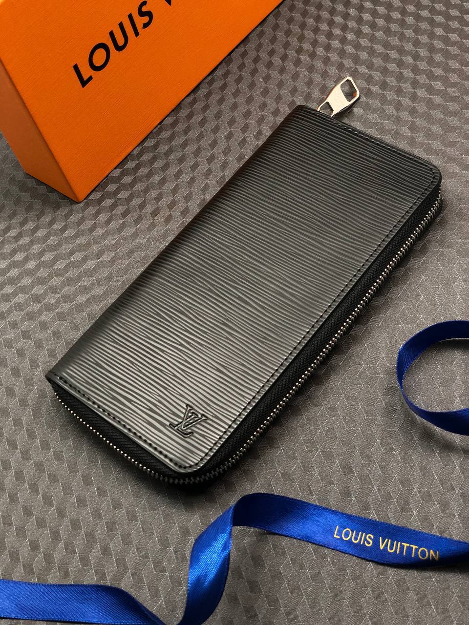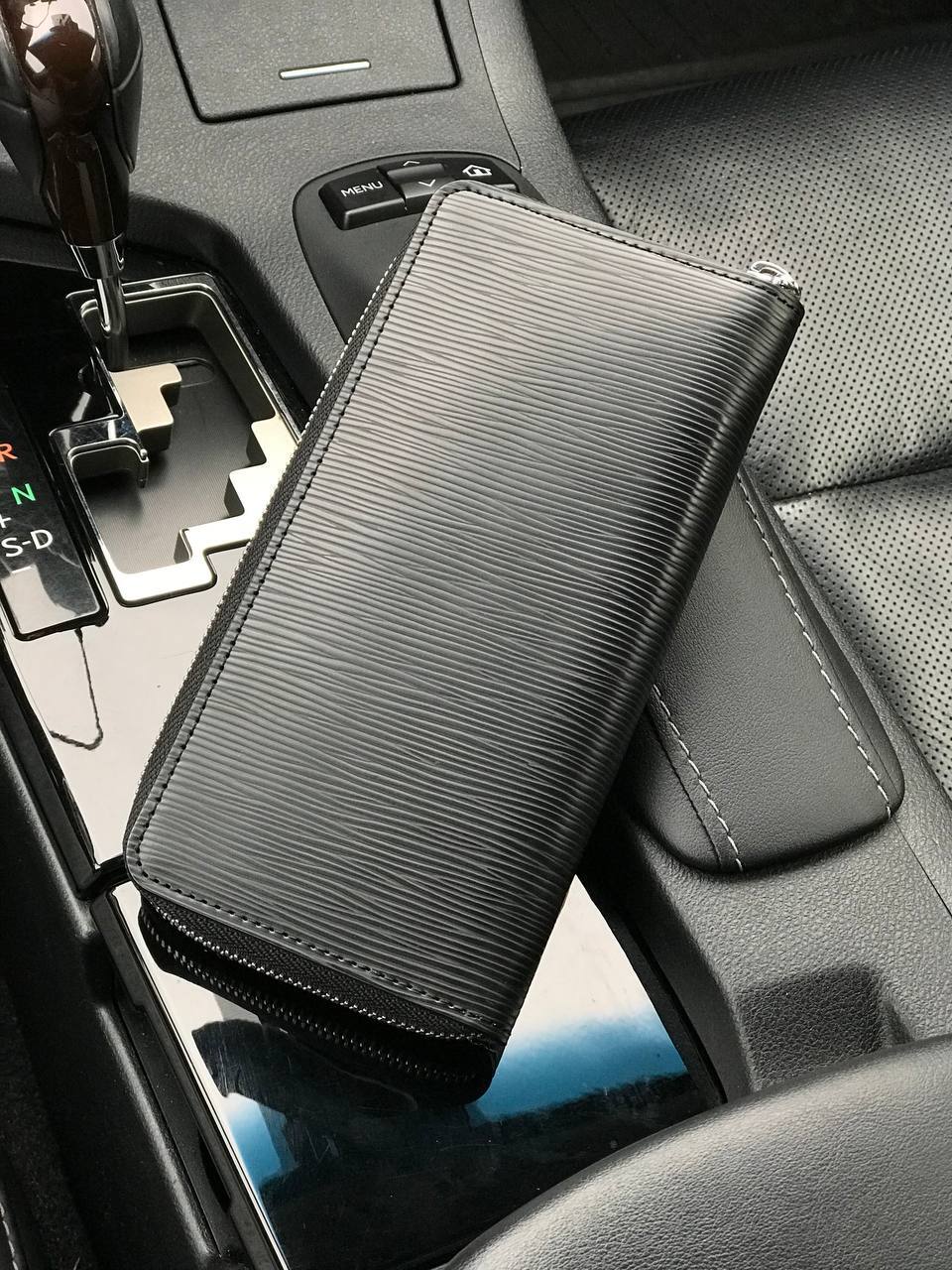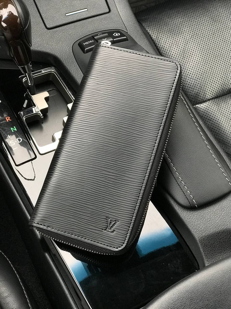 Портмоне выполнен из рельефной кожи Epi с характерным линейным узором. Минималистичный дизайн в черной гамме дополнен фирменным тиснением, создавая образ сдержанной роскоши.