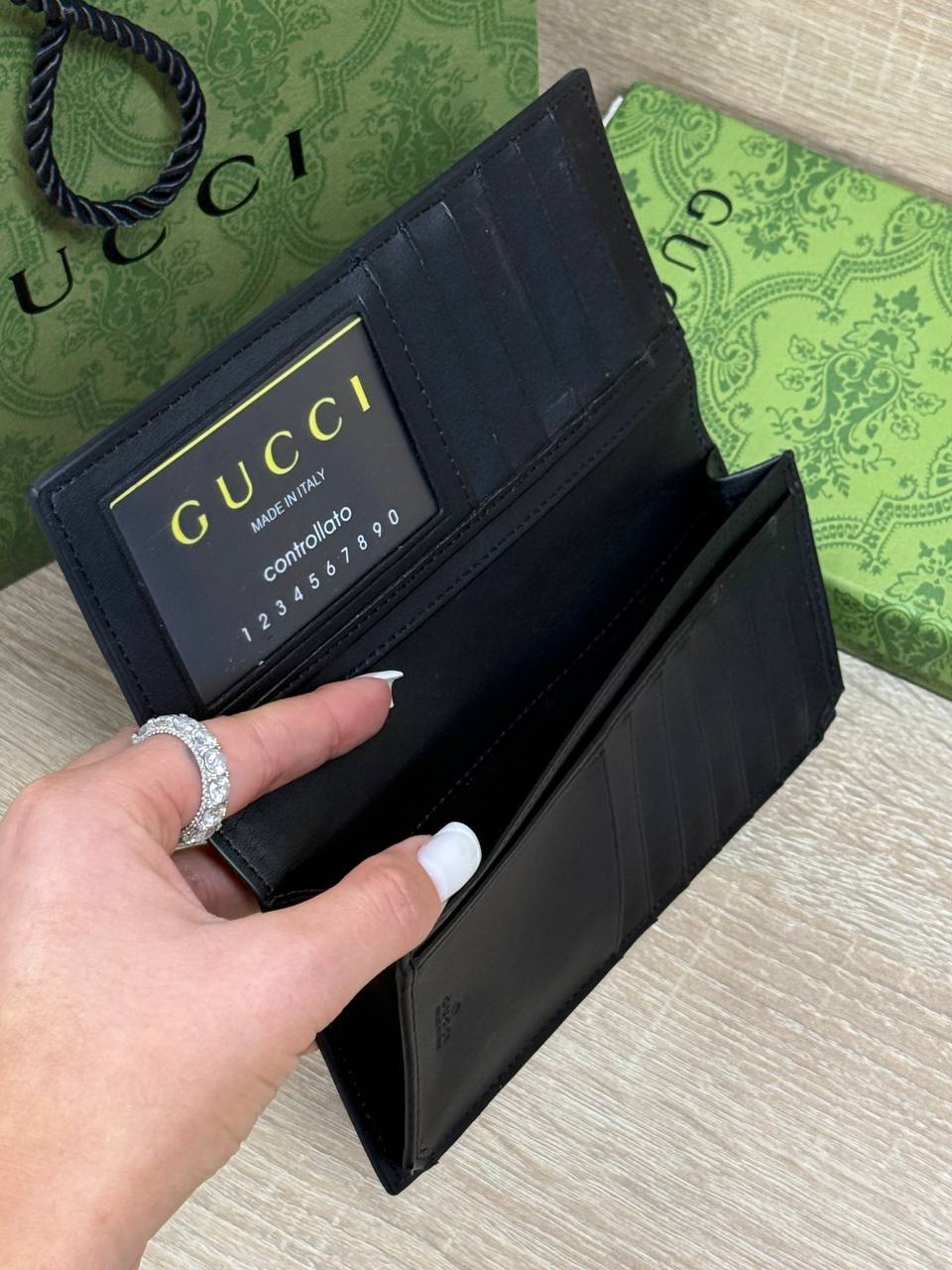 Портмоне от легендарного бренда Gucci — это воплощение изысканности и статуса! Изящно выполненное из натуральной кожи, оно отличается долговечностью и непревзойденным комфортом. Вместительное отделение позволит удобно разместить все необходимое, подчеркивая Ваш безупречный вкус. Стильное дополнение к любому образу, способное подчеркнуть престиж и исключительность своего владельца.