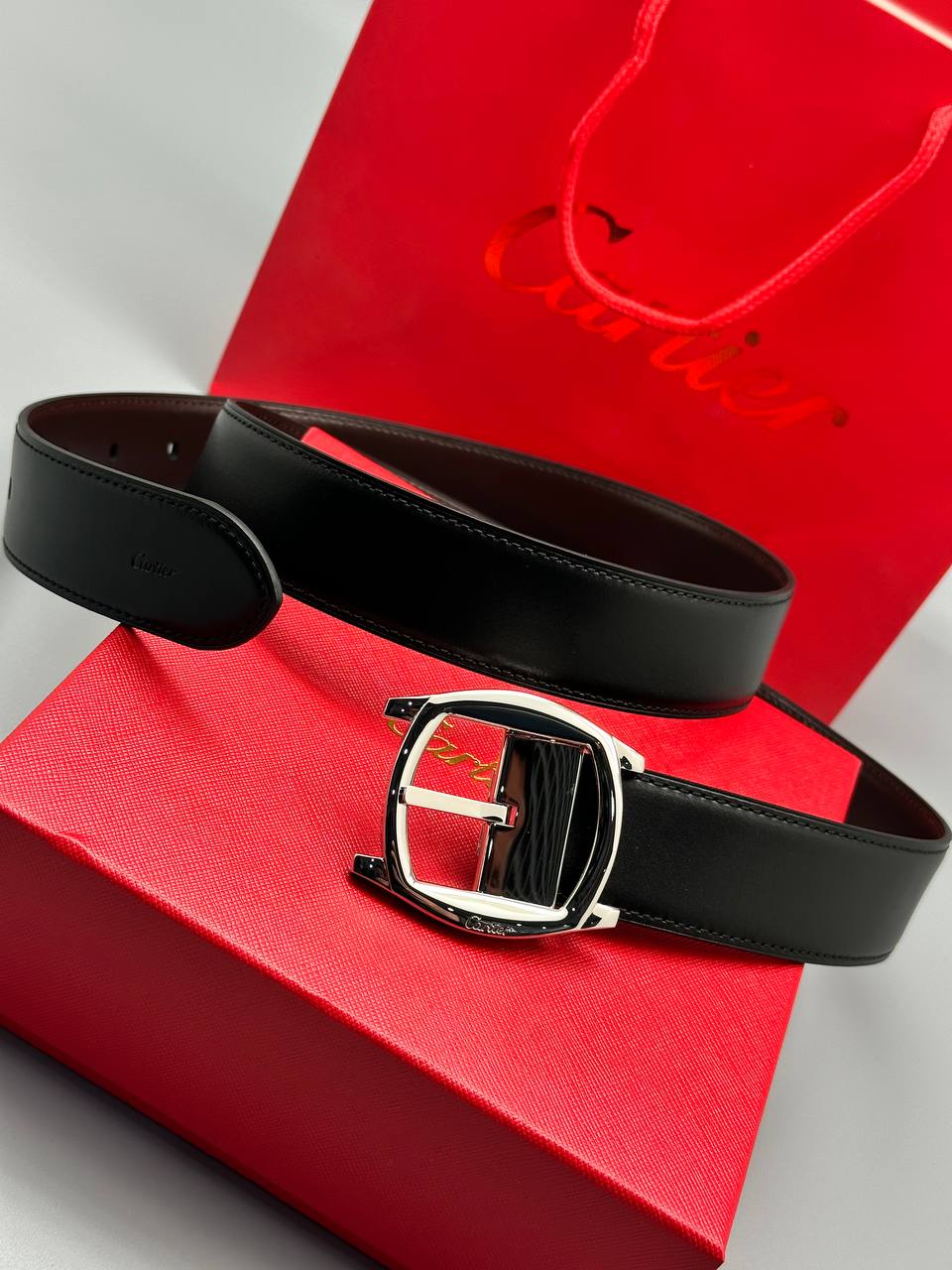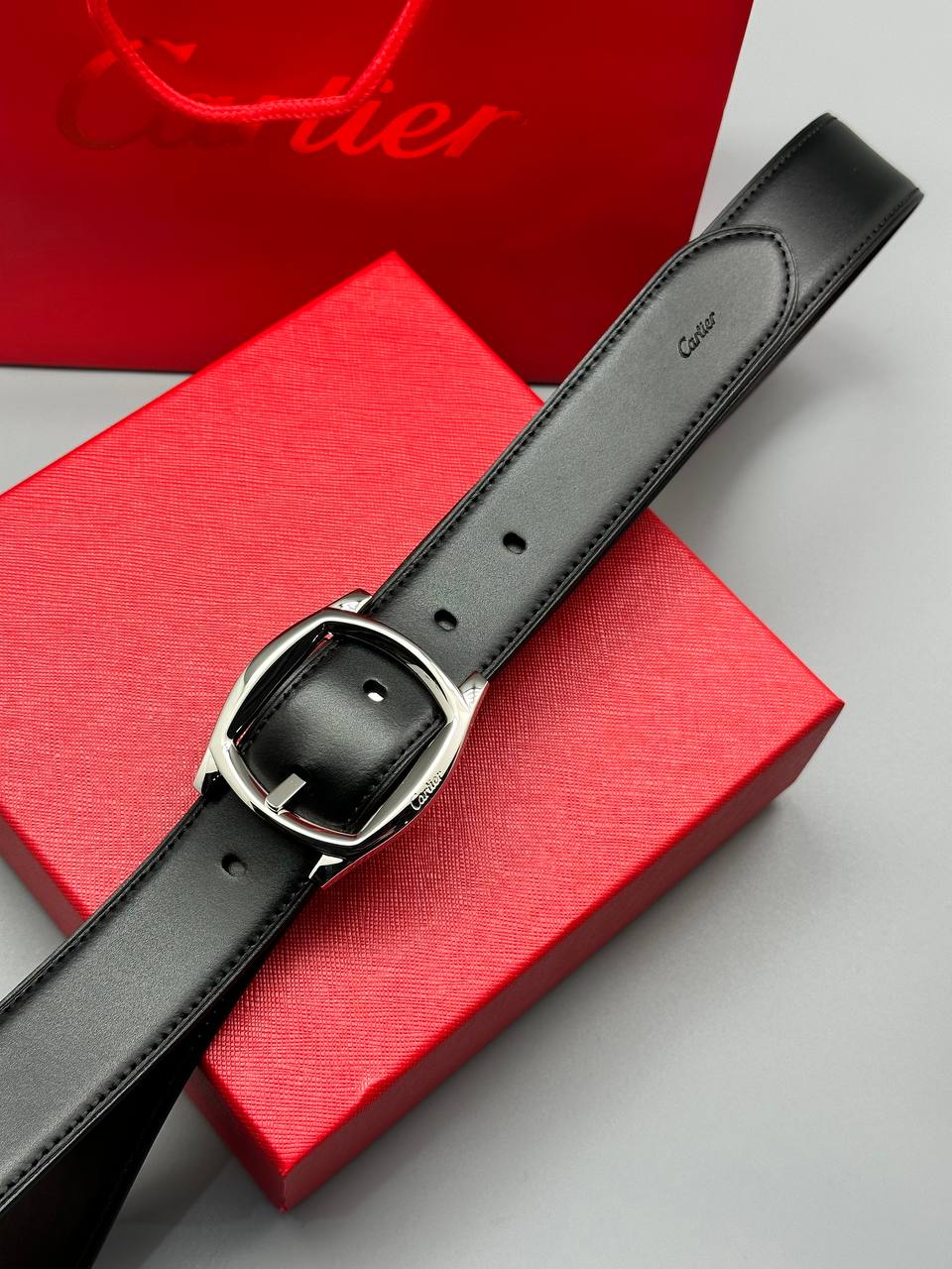 Кожаный ремень - классический черный дизайн из натуральной кожи с фирменной пряжкой, выполненной в виде переплетенных колец. Воплощение французской роскоши и утонченного стиля.