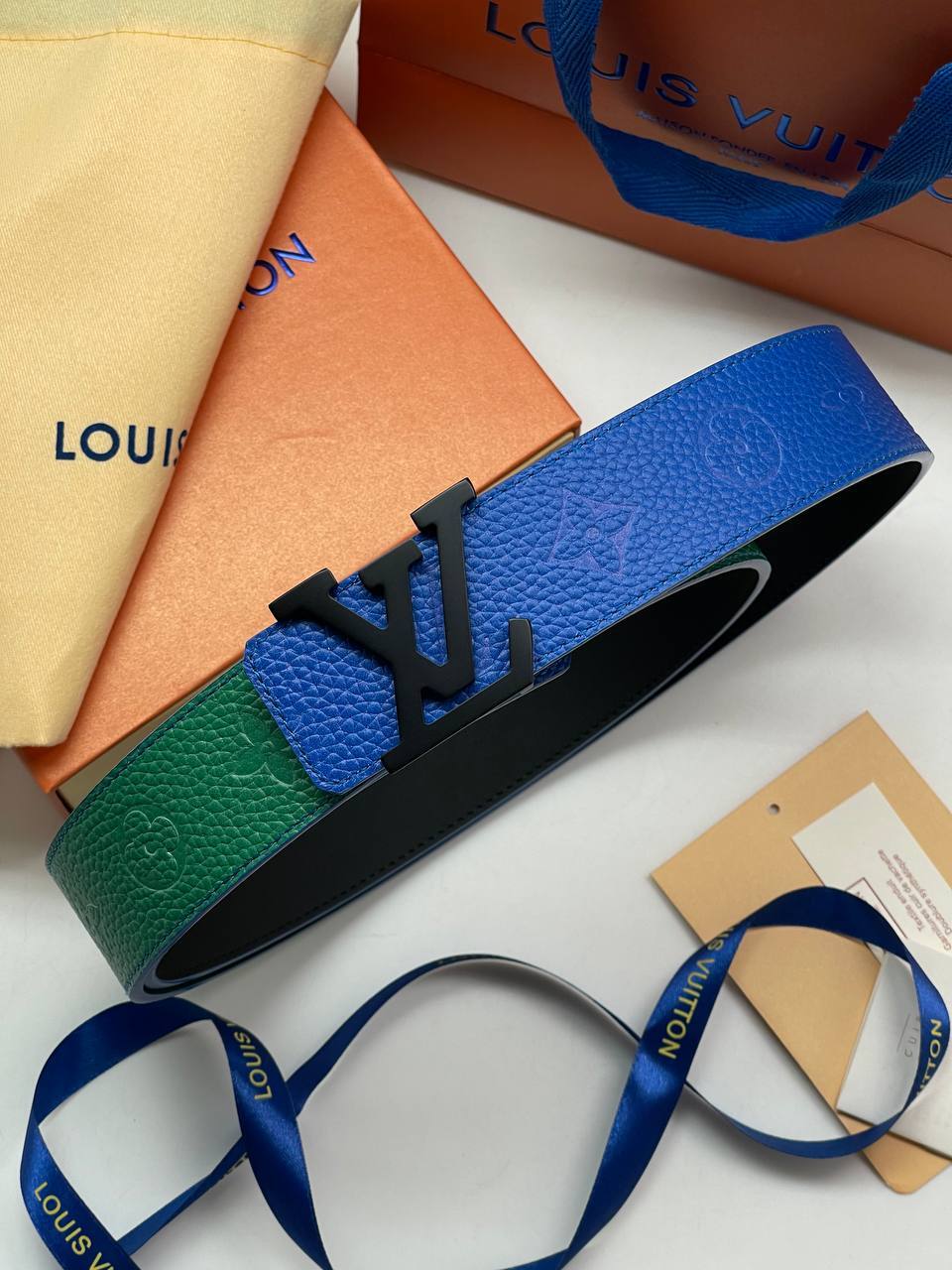 Эффектный ремень из кожи с оригинальной текстурой, выполненный в ярких синих и зеленых тонах.