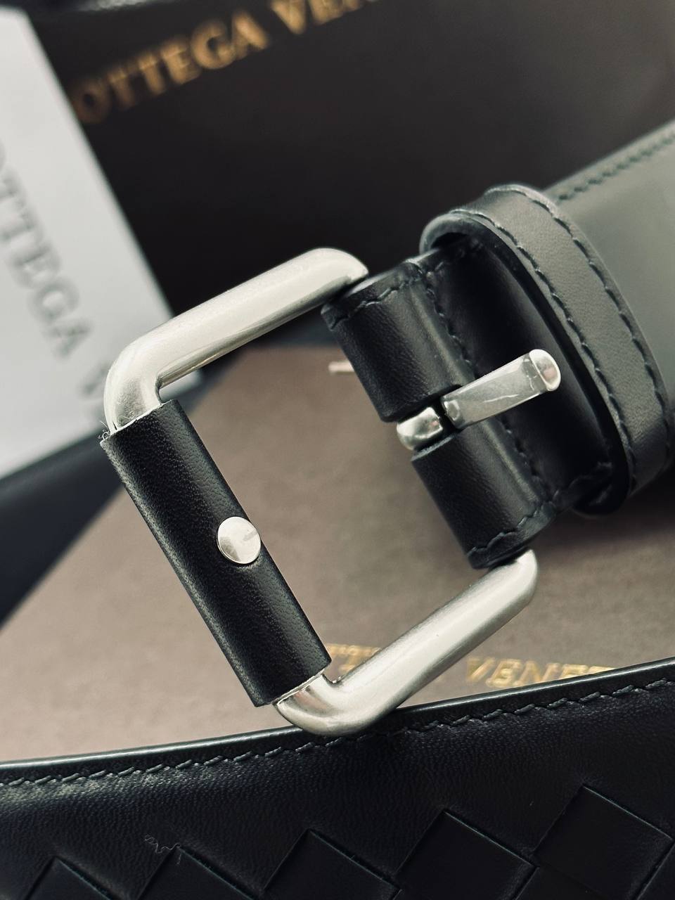 Брендовый кожаный ремень с декоративным плетением. Строгий деловой стиль, прочная металлическая пряжка, идеально дополнит классический гардероб.