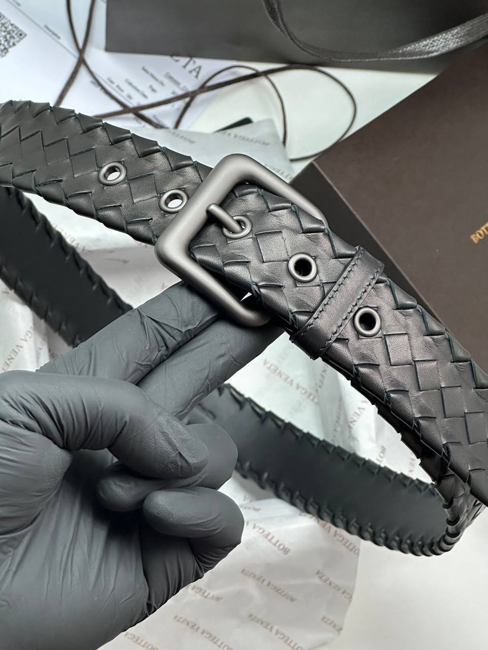 Фирменный ремень из переплетенных кожаных полос, сочетающий утонченность дизайна и грубоватую текстуру.