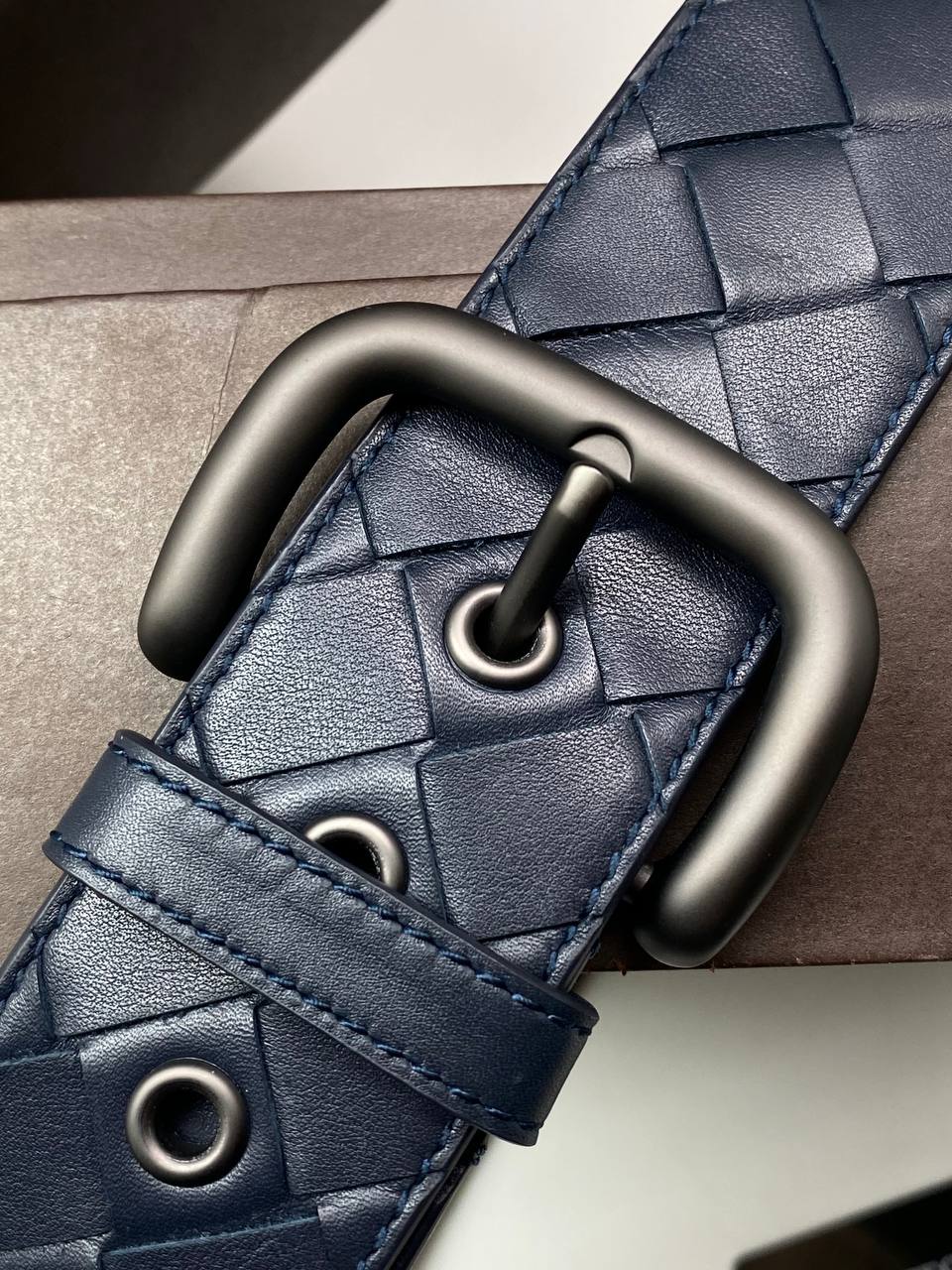 Аккуратный дизайн, глубокий синий оттенок, натуральная плетеная кожа и классическая пряжка — этот ремень подчеркнет ваш стиль и изысканность образов.