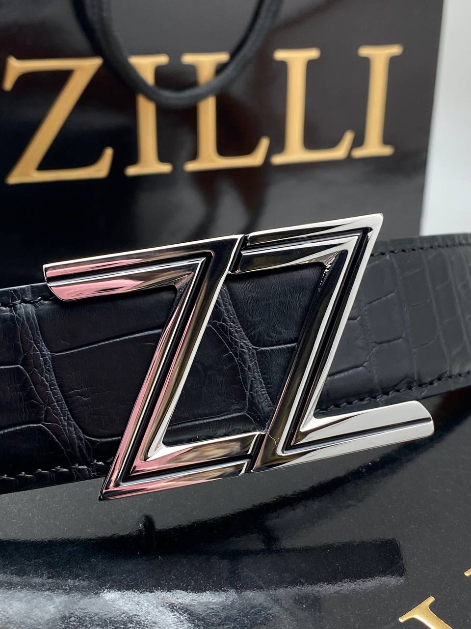 Ремень из крокодиловой кожи со стильной металлической пряжкой в стиле минимализма от люксового бренда.