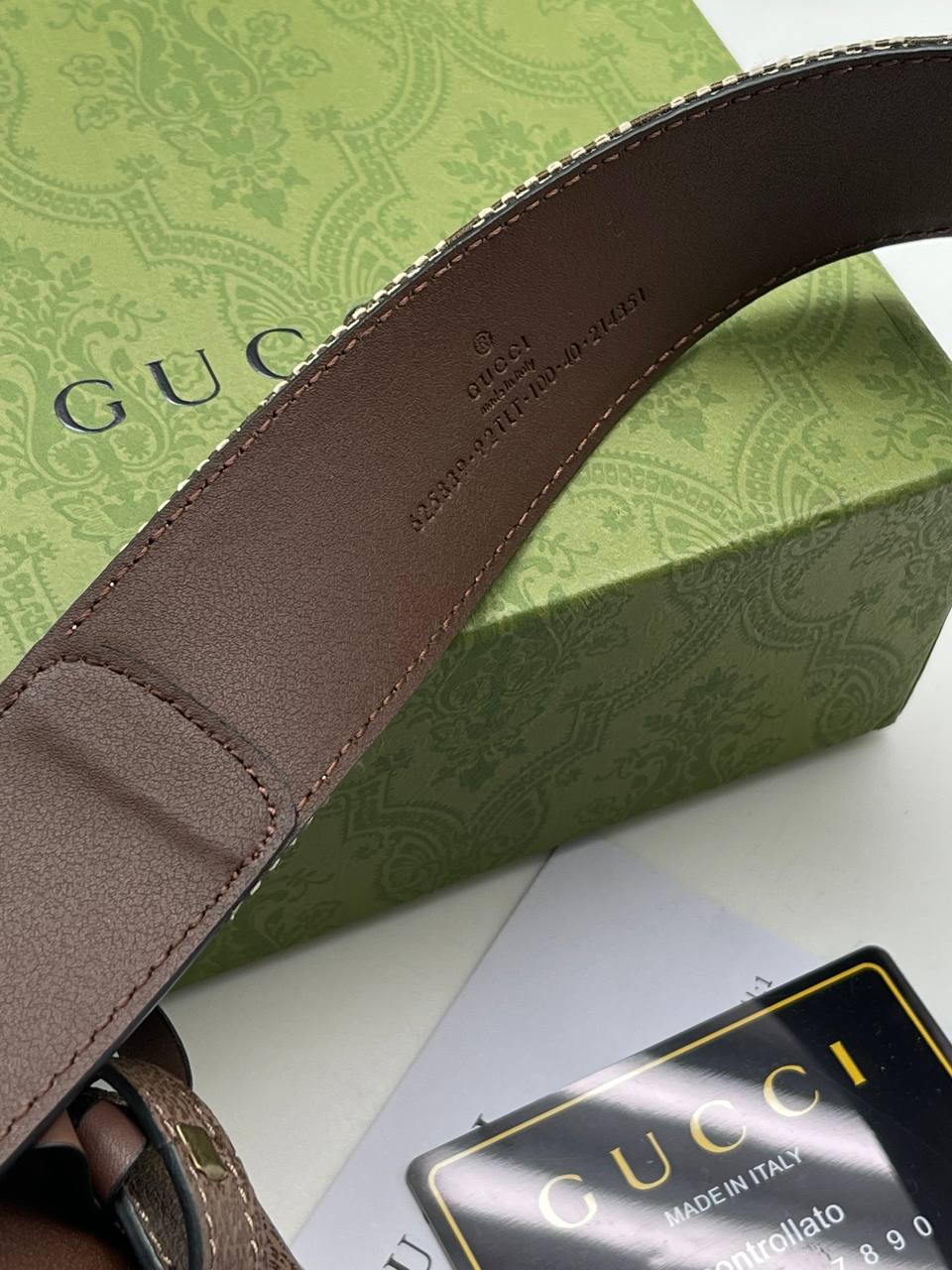 Ремень из кожи и текстиля, украшенный узнаваемым логотипом бренда, подчеркивает статус и вкус владельца.