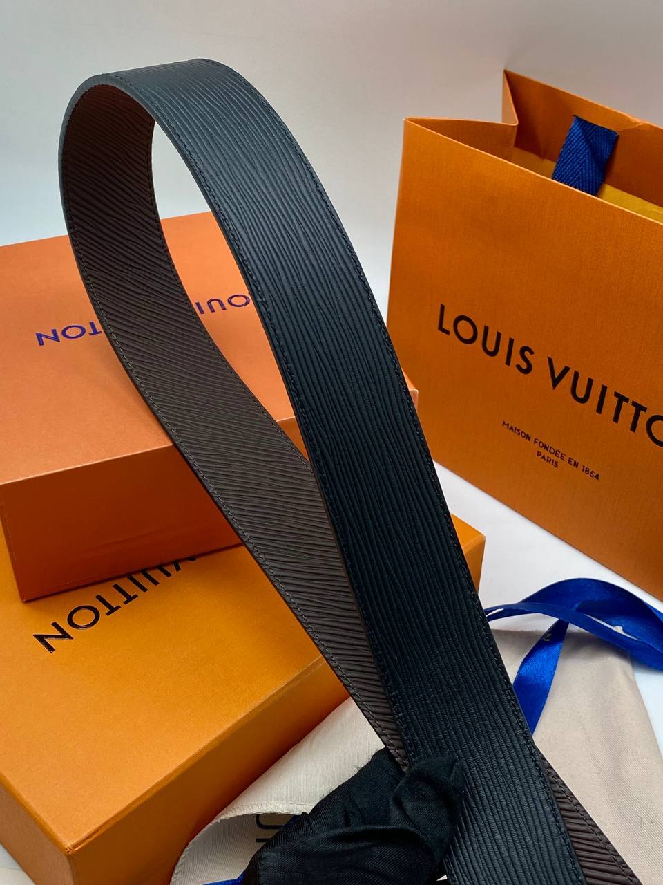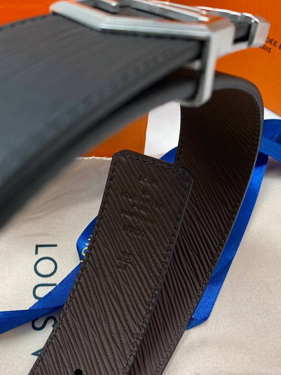 Кожаный ремень в классическом черном исполнении с металлической пряжкой серебристого оттенка. Рельефная поверхность кожи и узнаваемая символика бренда создают образ делового человека.