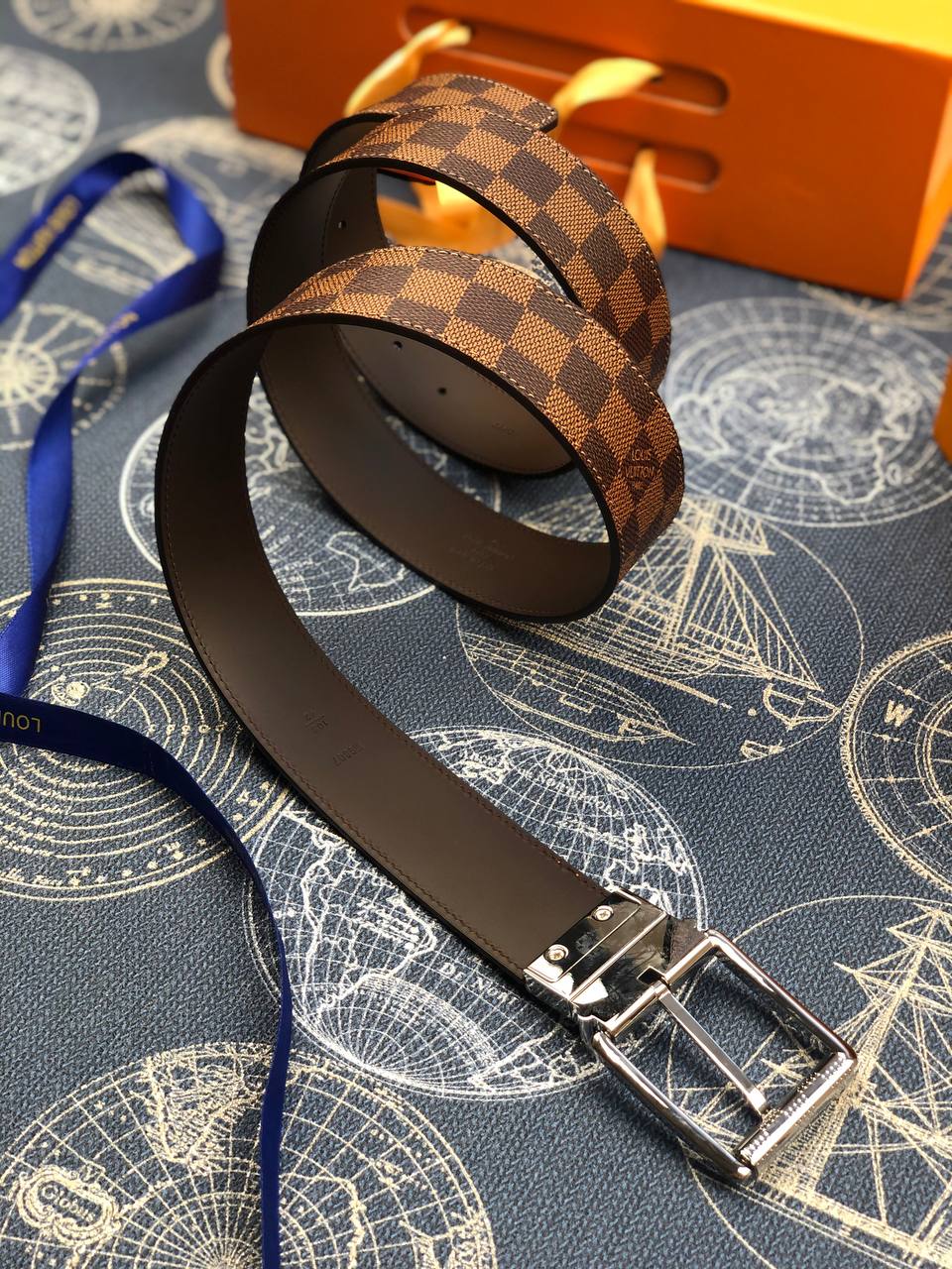Ремень в классическом дизайне Damier Ebene из прочного канваса и кожи с серебристой металлической пряжкой - элегантный аксессуар люкс-класса.