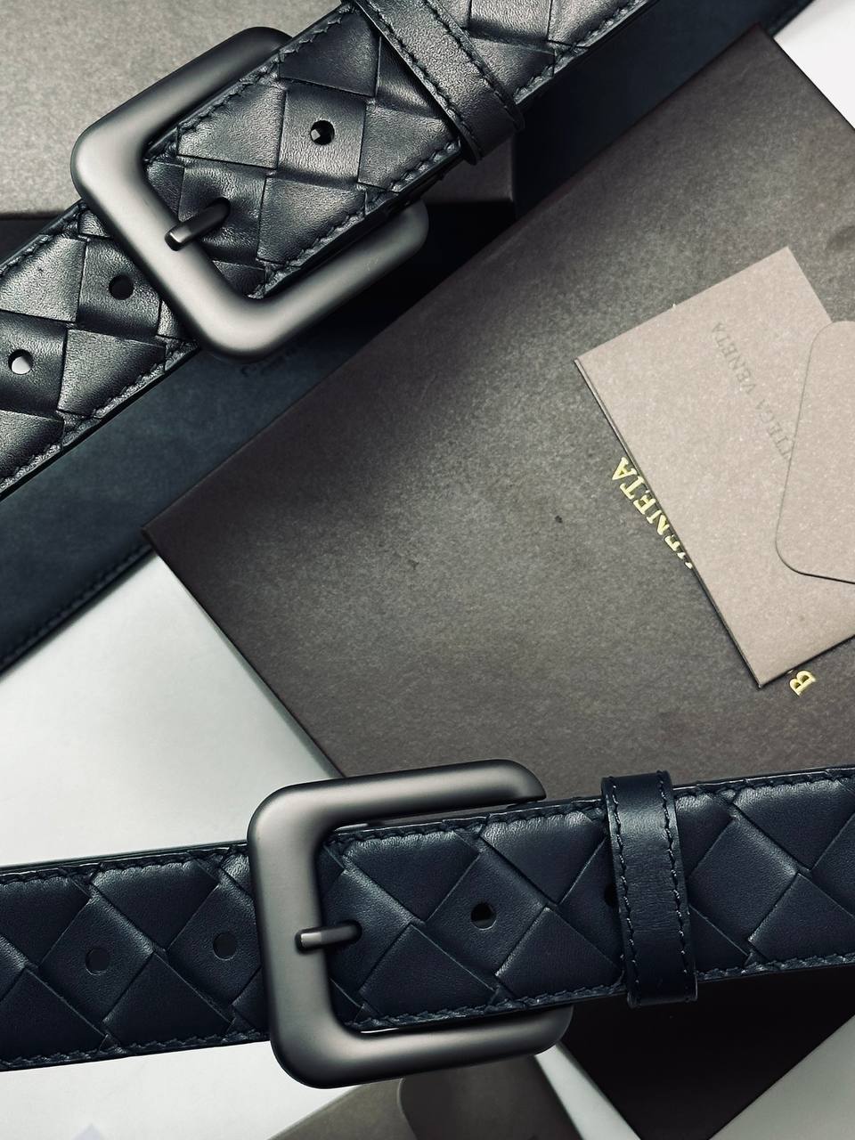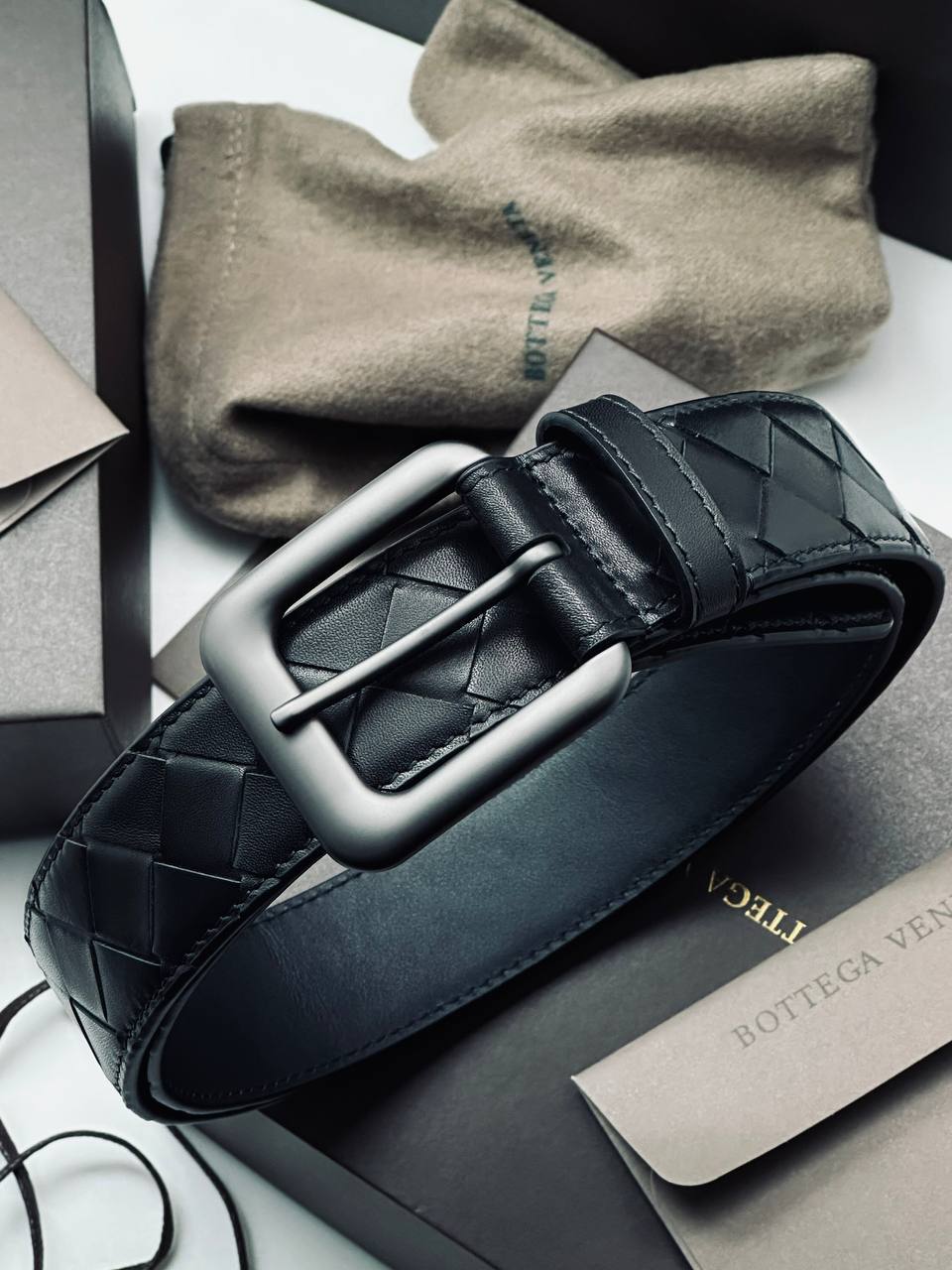 Кожаный ремень в характерной технике плетения - визитной карточке дома моды. Элегантный аксессуар из мягкой телячьей кожи с матовой пряжкой для делового и повседневного образа.