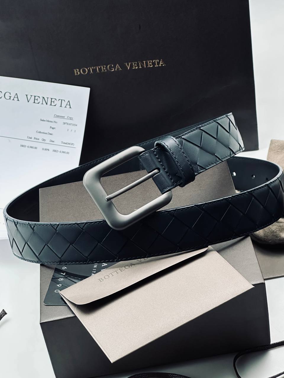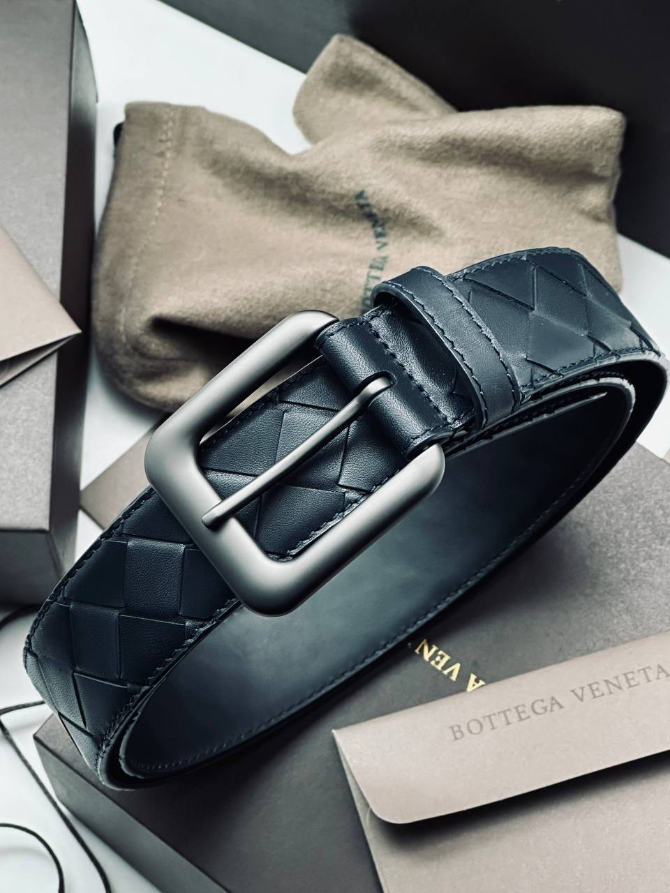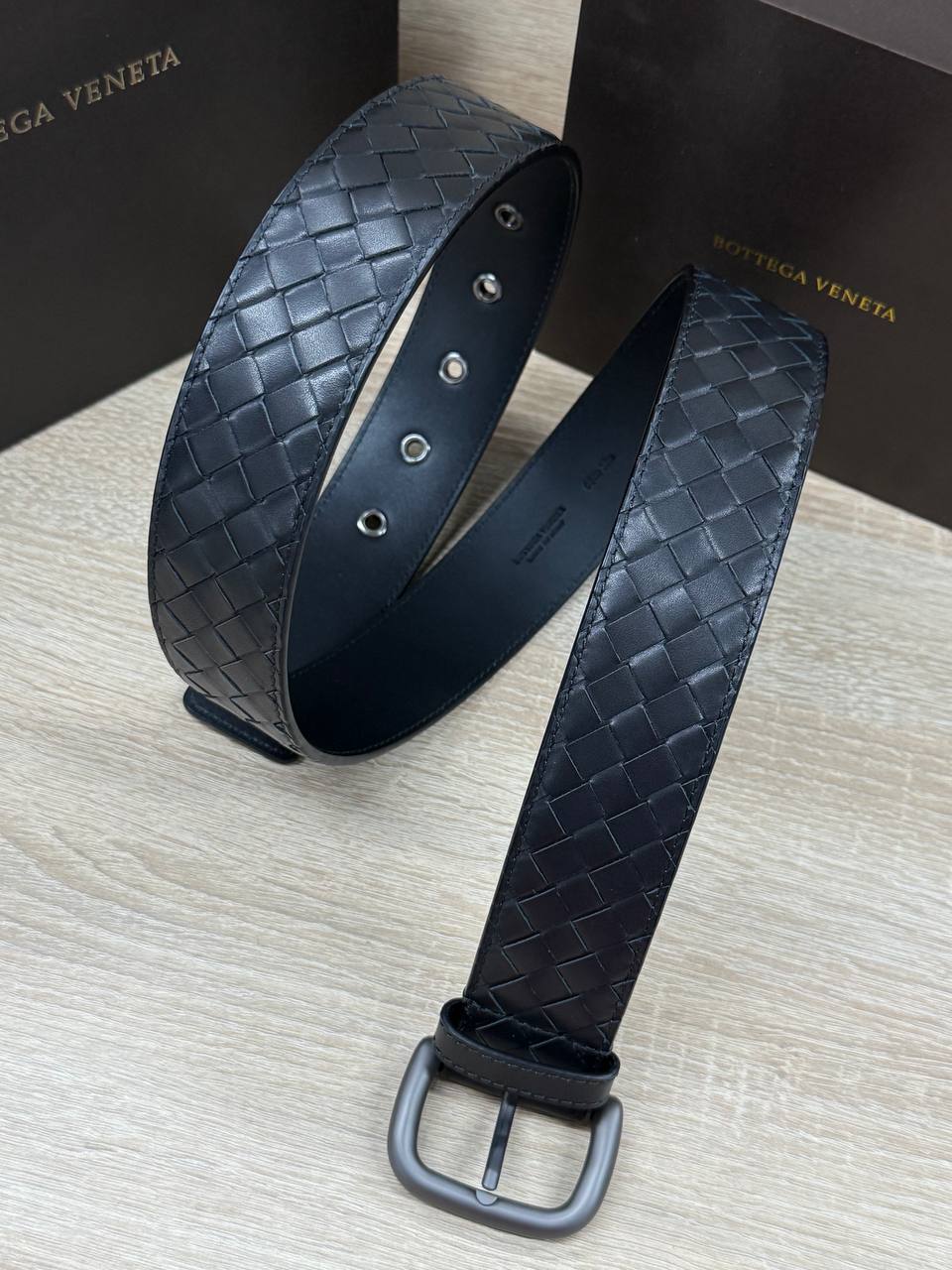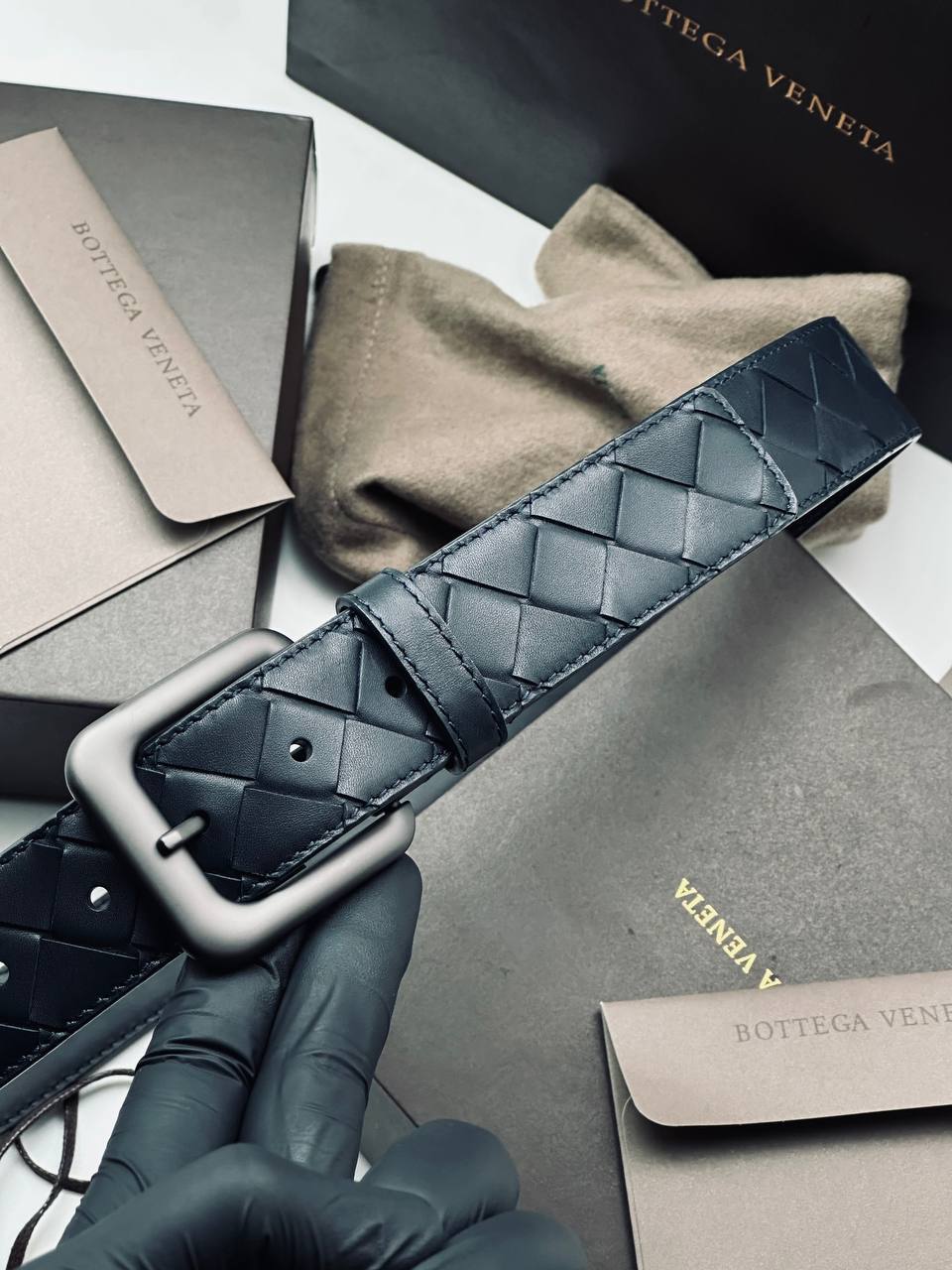 Ремень Bottega Veneta из натуральной кожи черного цвета.