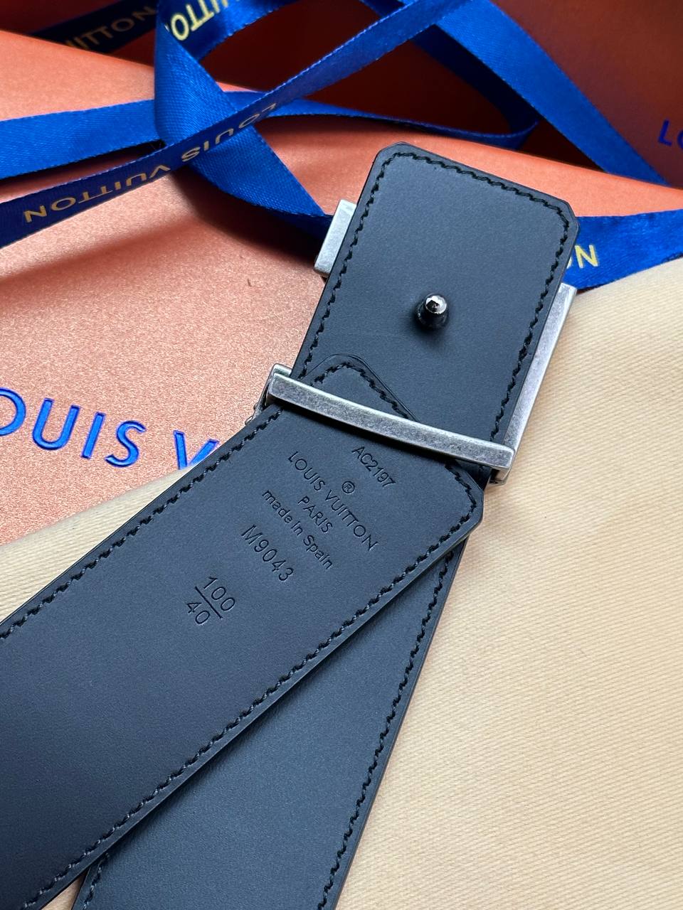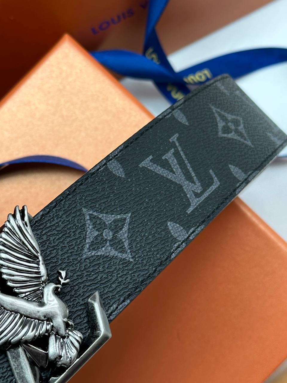 Стильный ремень из серой канвы монограмм с необычной серебристой пряжкой - воплощение современной элегантности.