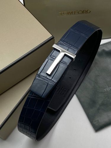 Кожаный ремень с массивной металлической пряжкой в виде инициалов бренда - элегантный аксессуар в стиле люкс.