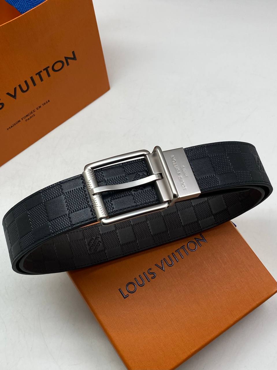 Кожаный ремень с узнаваемым дизайном Damier и лаконичной матовой пряжкой.