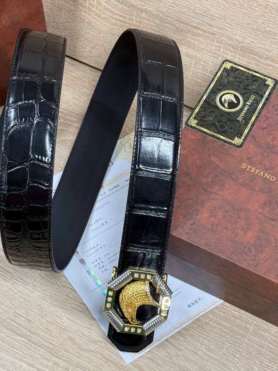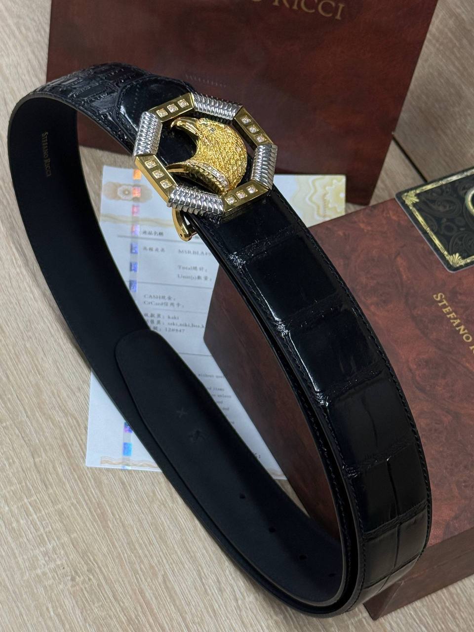 Ремень из эксклюзивной кожи крокодила бренда Stefano Ricci — воплощение изысканности и статуса! Элегантная пряжка легко снимается, позволяя адаптироваться под ваш стиль и настроение. Черный оттенок универсален и идеально дополнит любой образ. Натуральная кожа гарантирует долговечность и комфорт при носке. Сделайте акцент на своем стиле с аксессуаром премиум-класса!