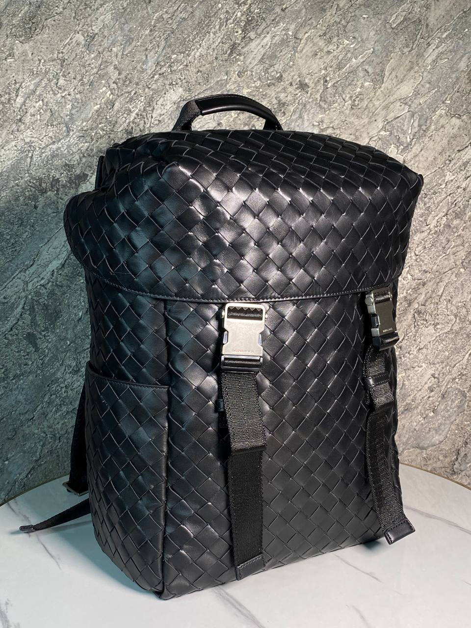 Кожаный рюкзак с фирменным плетением "intrecciato", создающим эффектную фактуру. Лаконичный дизайн и безупречное итальянское качество.