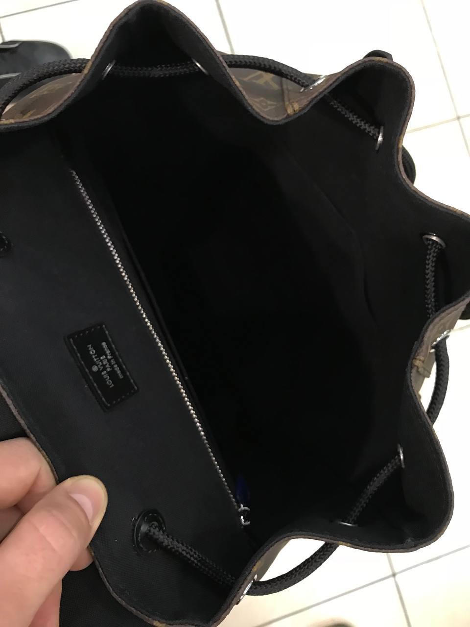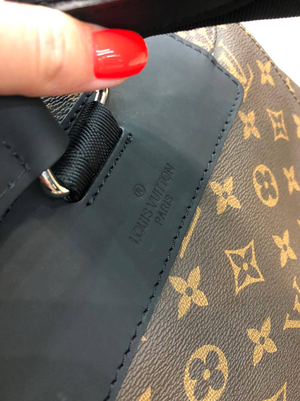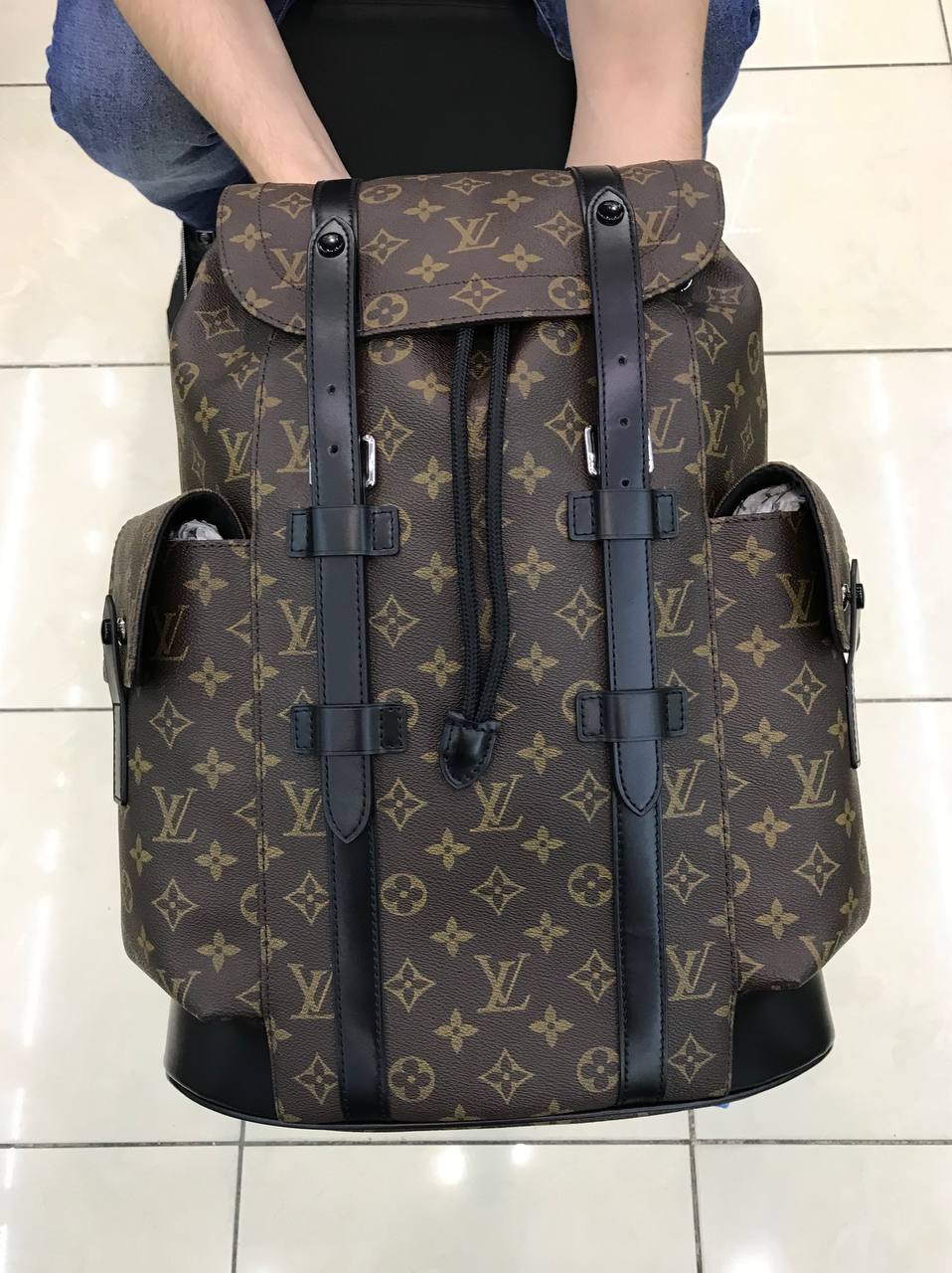 Премиальный рюкзак из коричневой монограммной канвы с тёмными кожаными ремнями и деталями в стиле casual.