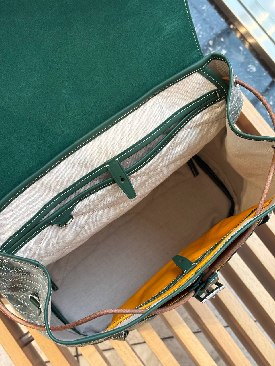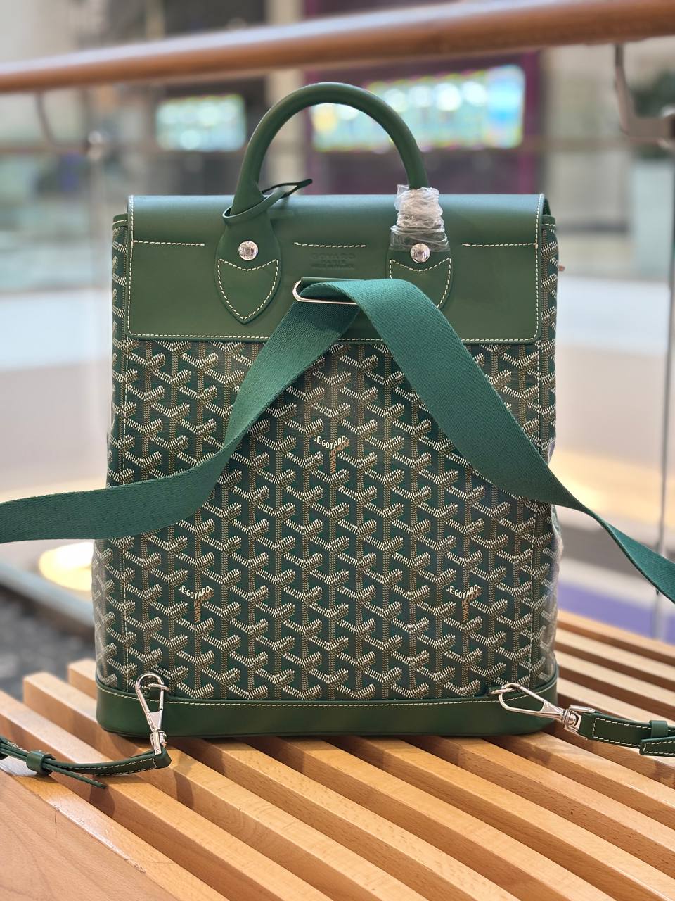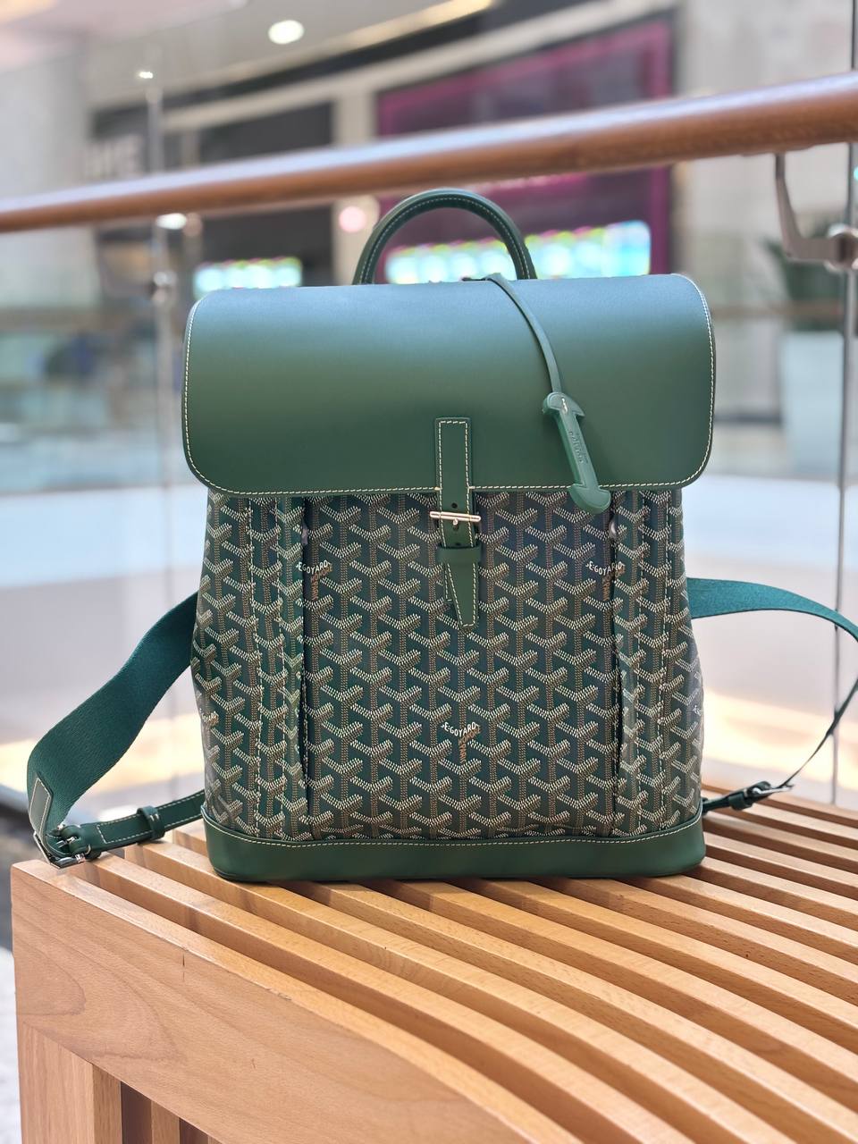 Благородный изумрудный рюкзак — гладкая кожа, графичный узор и идеальные линии, которые делают каждую прогулку маленьким событием.