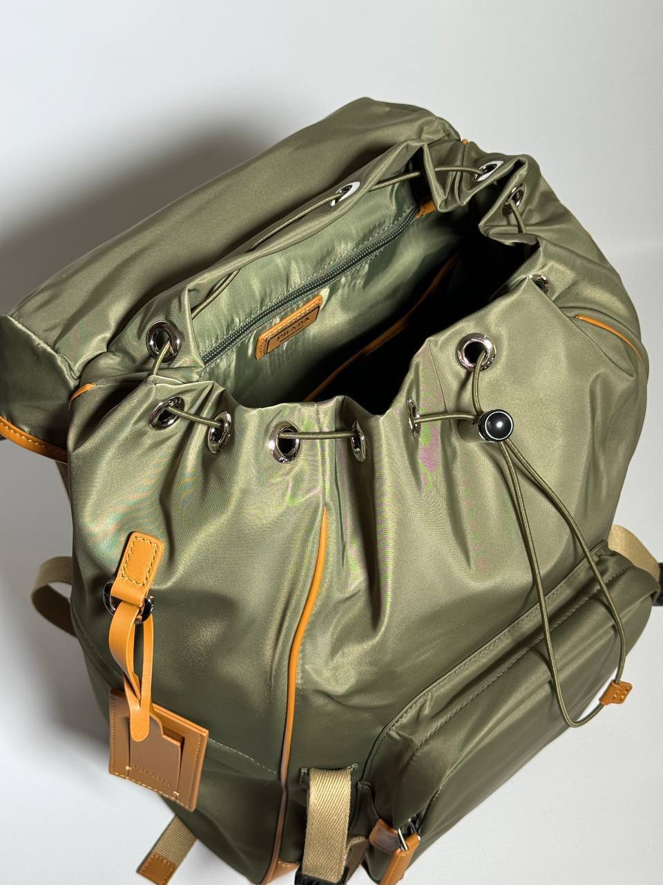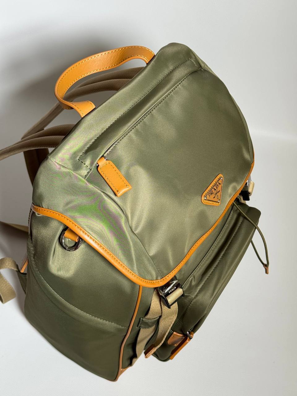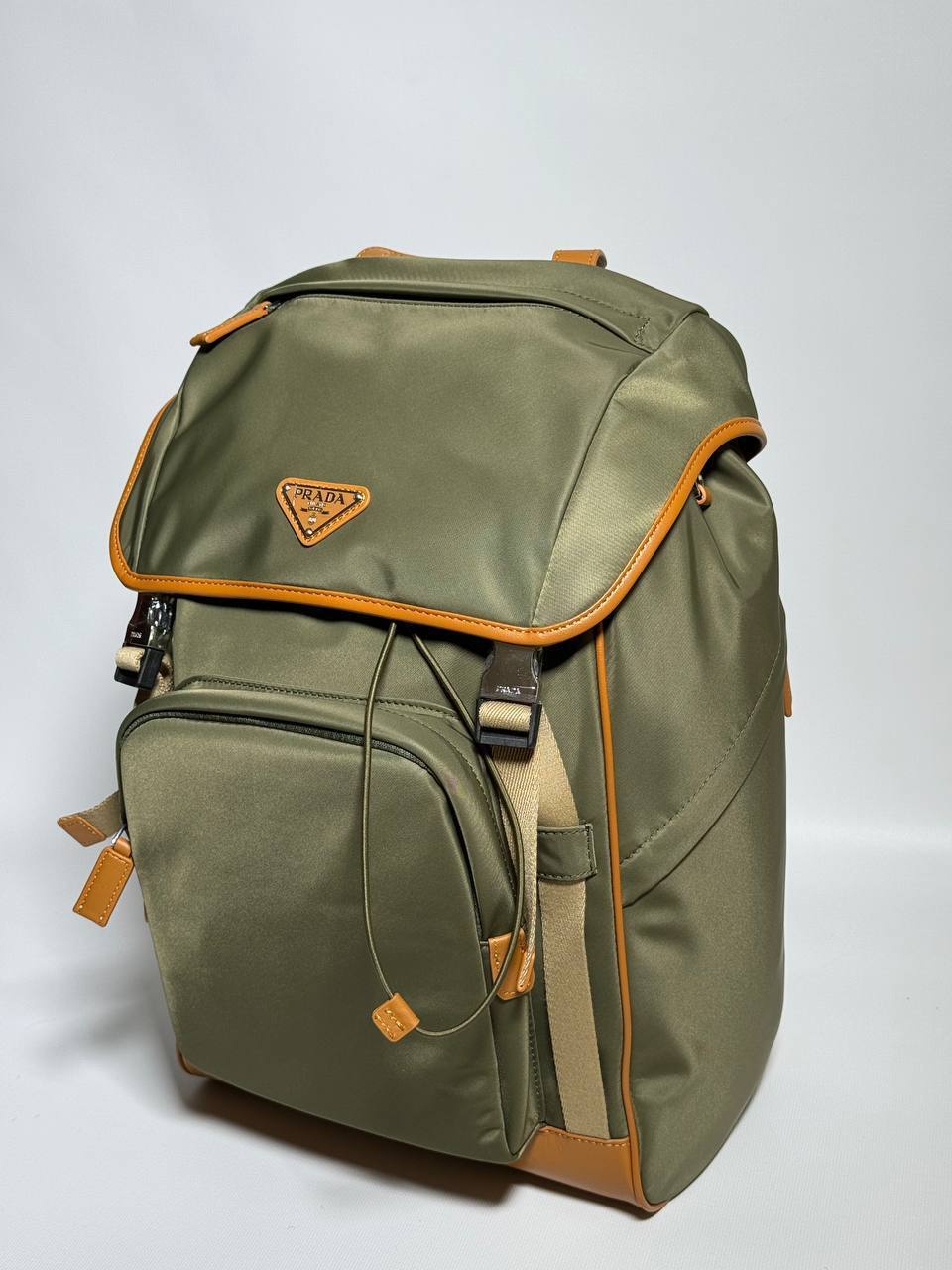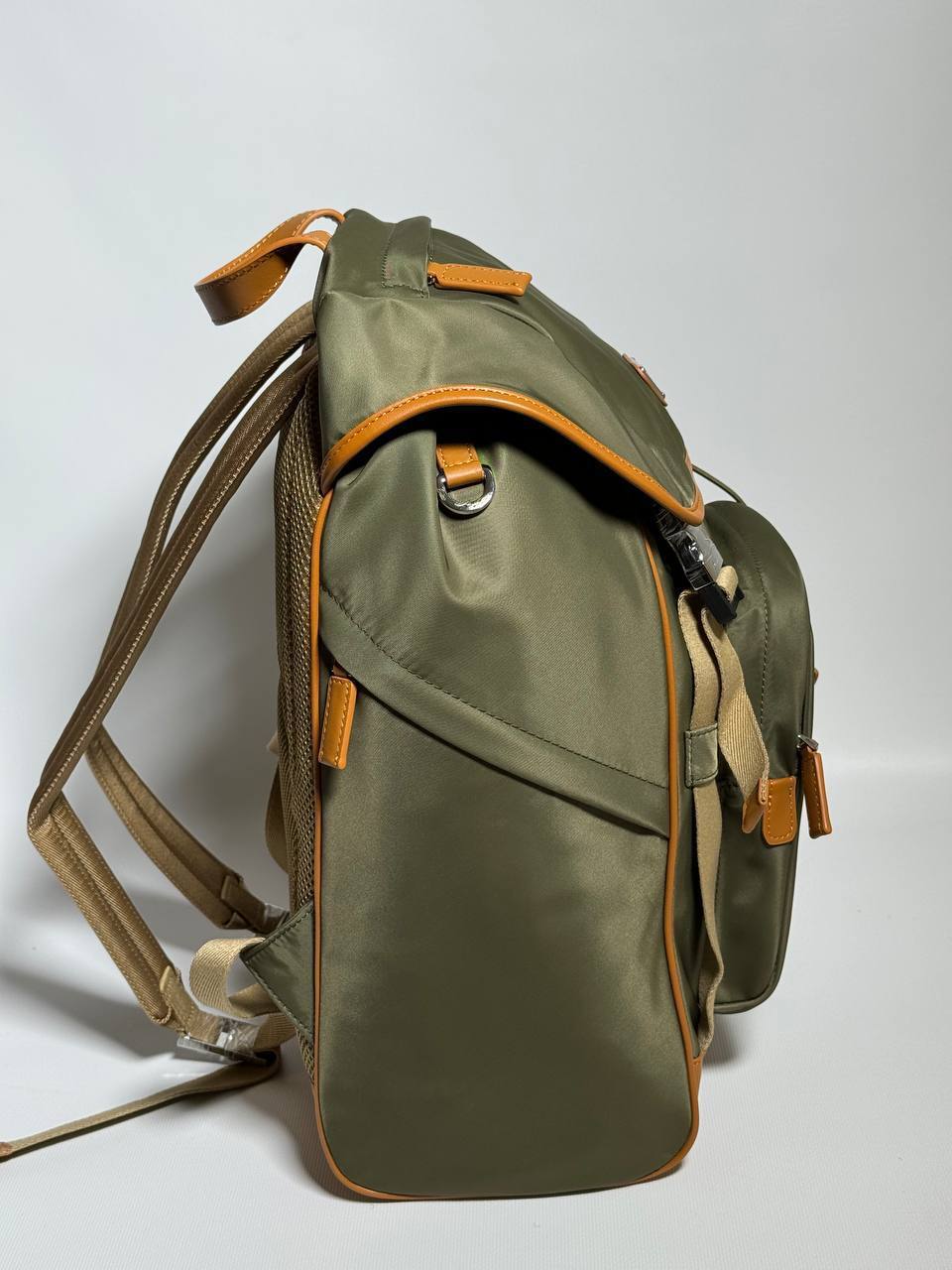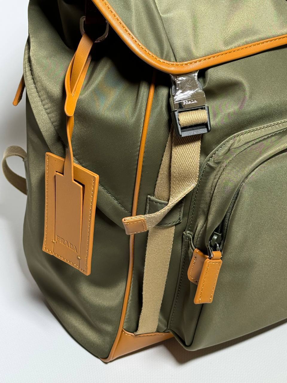 Рюкзак Prada технического дизайна изготовлен из Re-Nylon, инновационной технической ткани. Аксессуар украшен деталями из сафьяновой кожи.