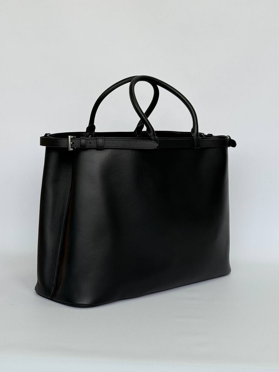 Кожаная деловая сумка в прагматичном, но изысканном дизайне с внутренней частью из кожи наппа с центральным карманом. В комплекте декоративные съемные ремни и плечевой кожаный ремень.