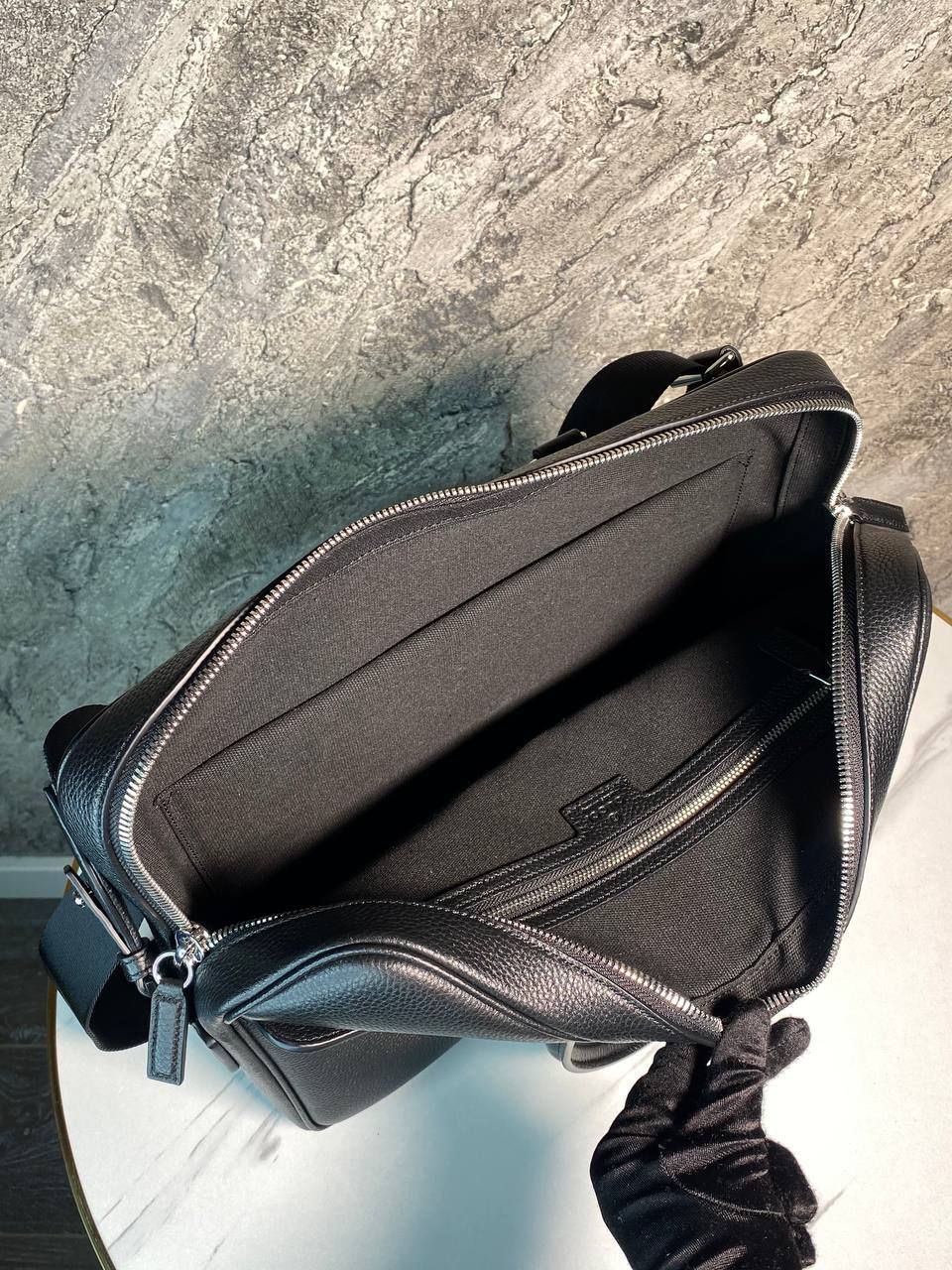 Стильная деловая сумка из прочной текстурированной канвы, украшенная знаковым логотипом и дополненная функциональными отделениями.