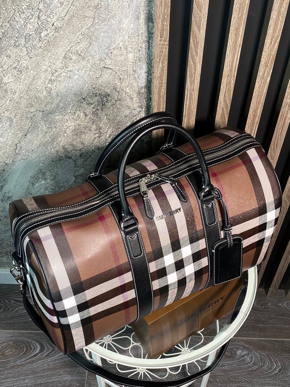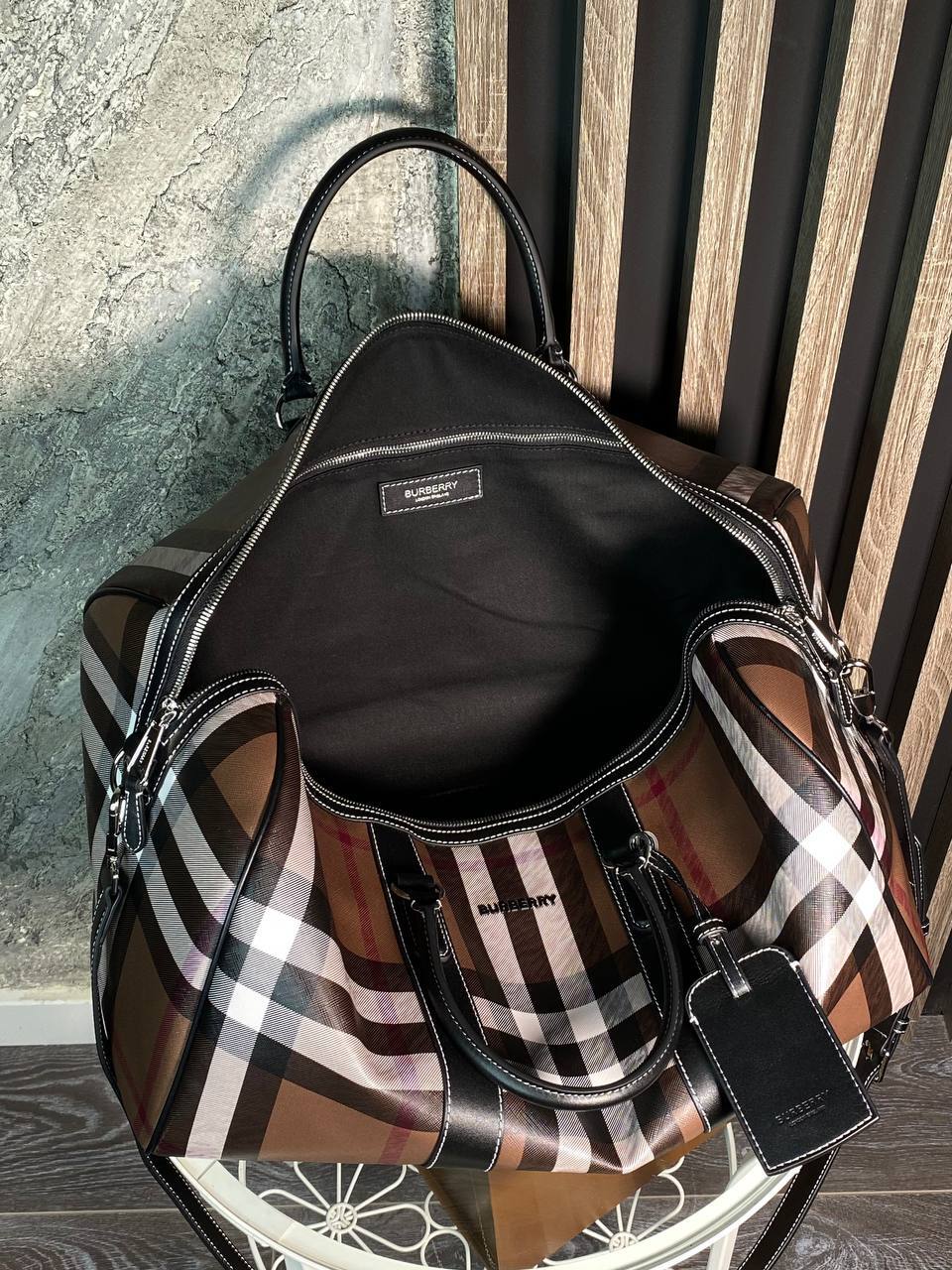 Элегантная сумка в культовую клетку, сочетающая классический дизайн и современные детали, идеальна для путешествий и деловых поездок.