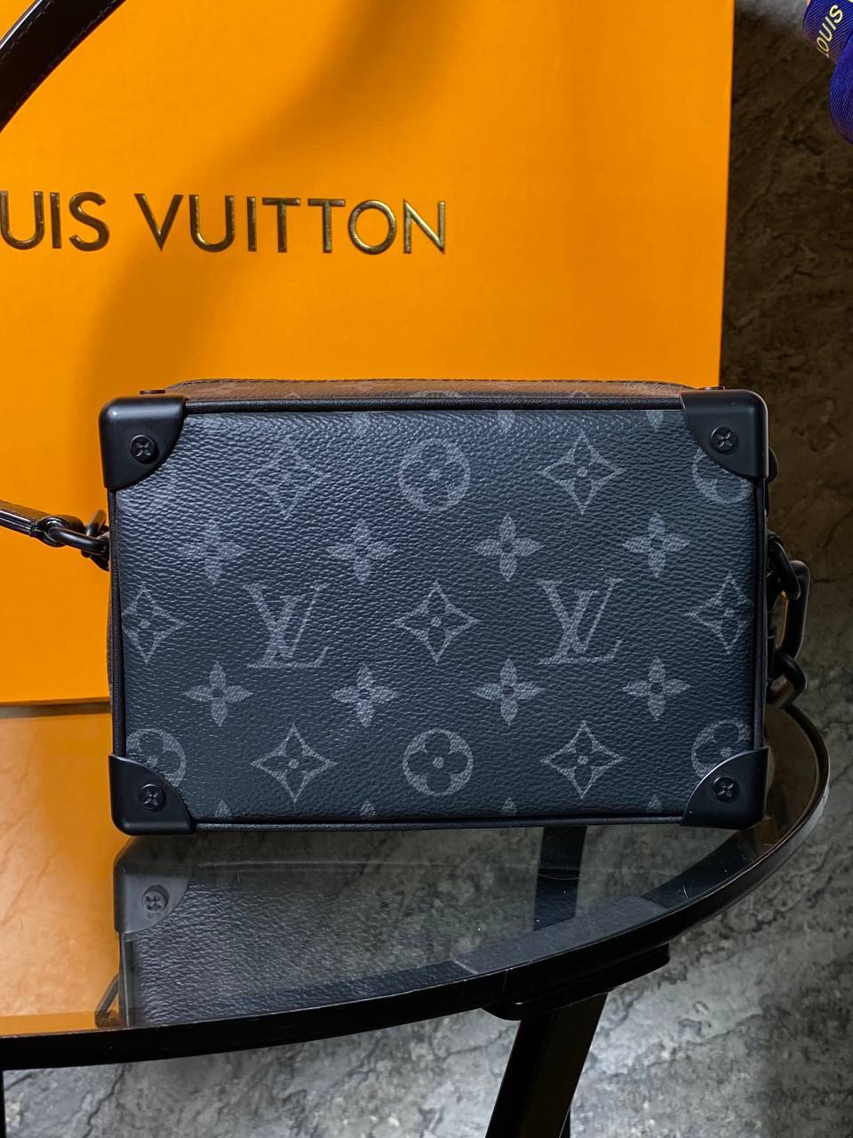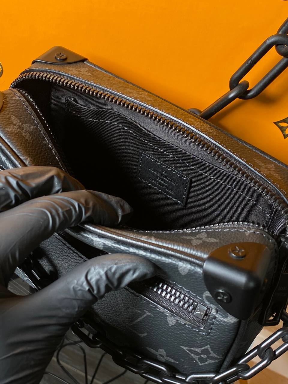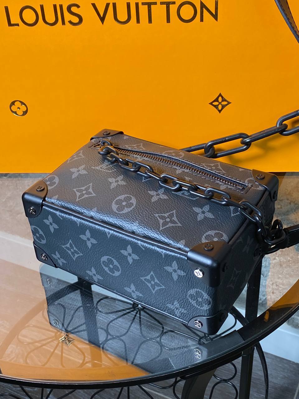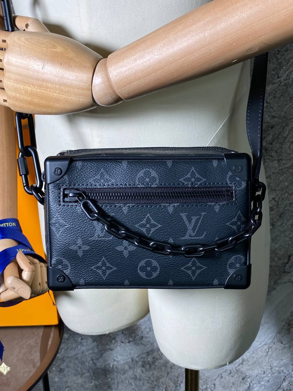 Стильная сумка-клатч из монограммной канв, выполненная в черном цвете с элегантной цепочкой.