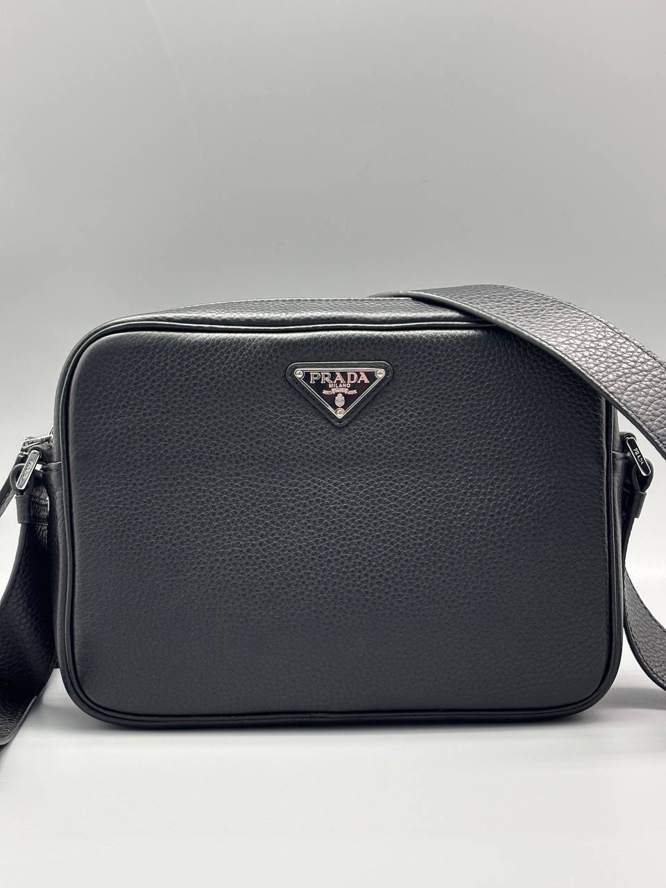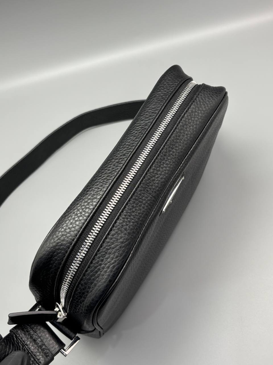 Классическая кросс-боди сумка - выполнена из качественной фактурной кожи в черном цвете, дополнена металлической фурнитурой и узнаваемой эмблемой бренда в стиле luxury.