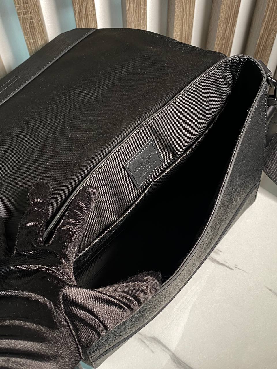 Стильная и практичная сумка-мессенджер из зернистой кожи. Лаконичный дизайн в черном цвете с фирменным логотипом.