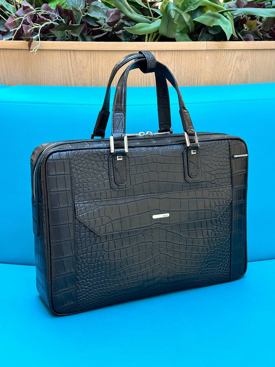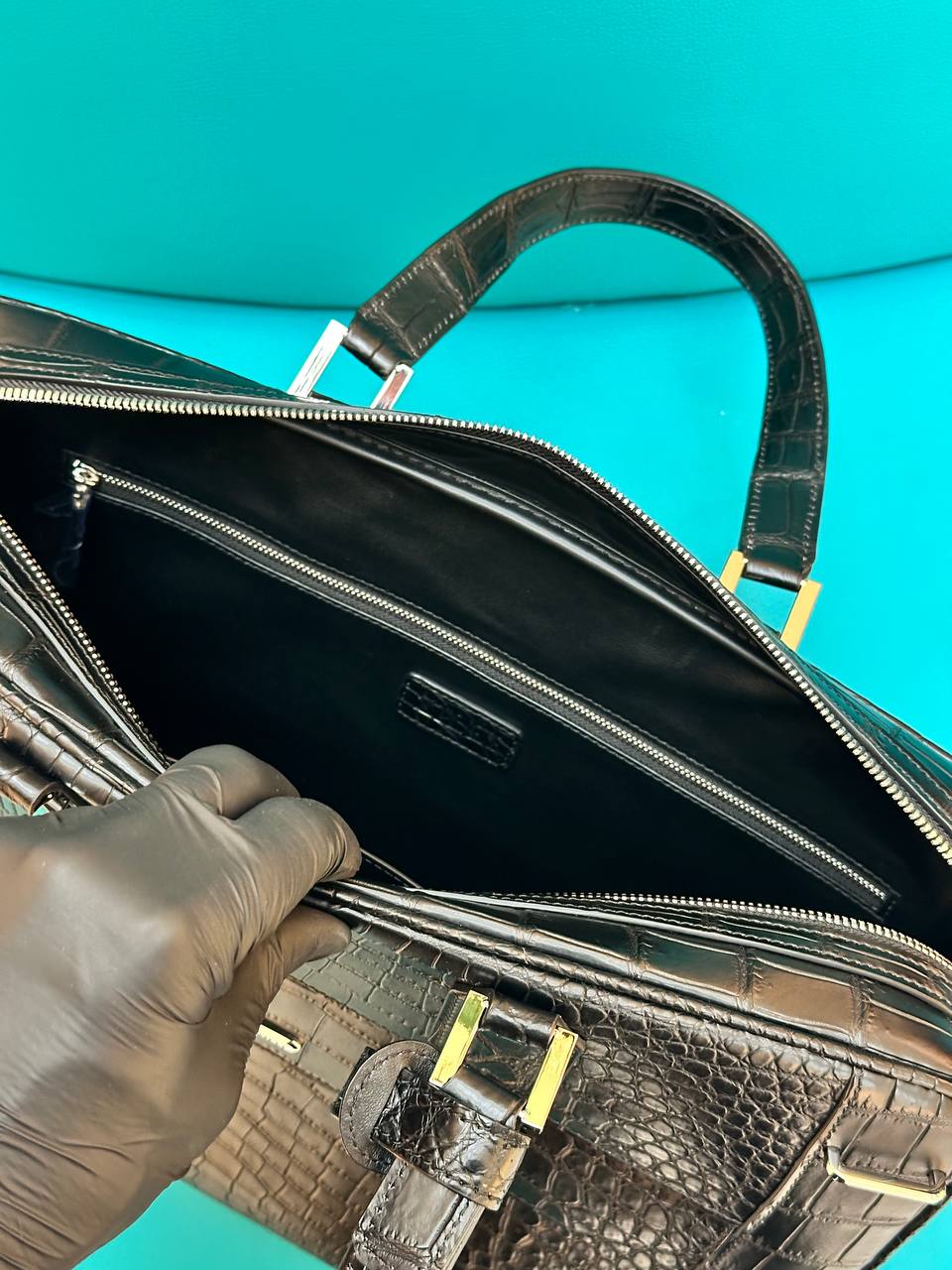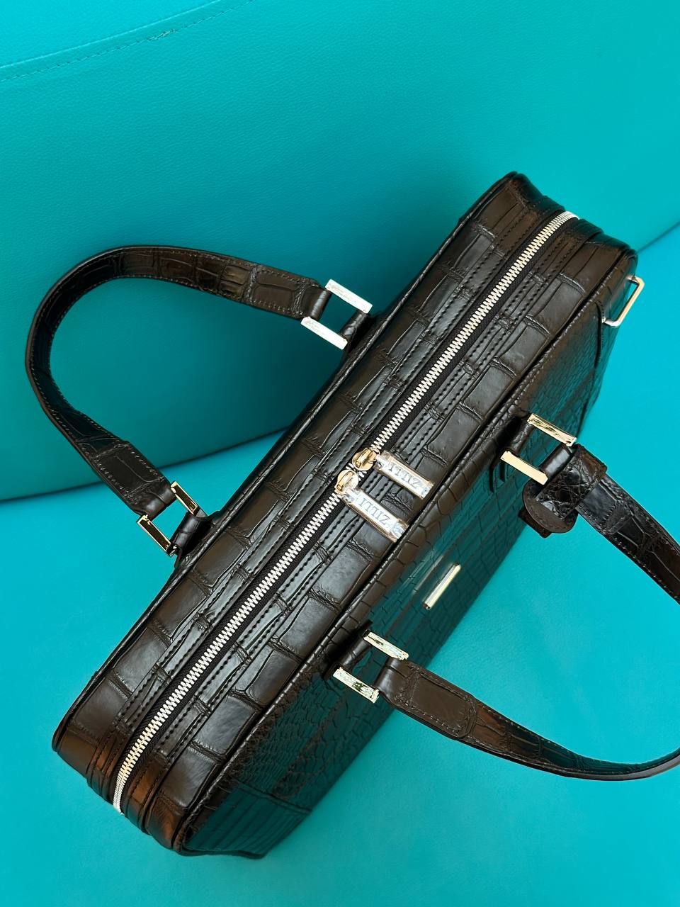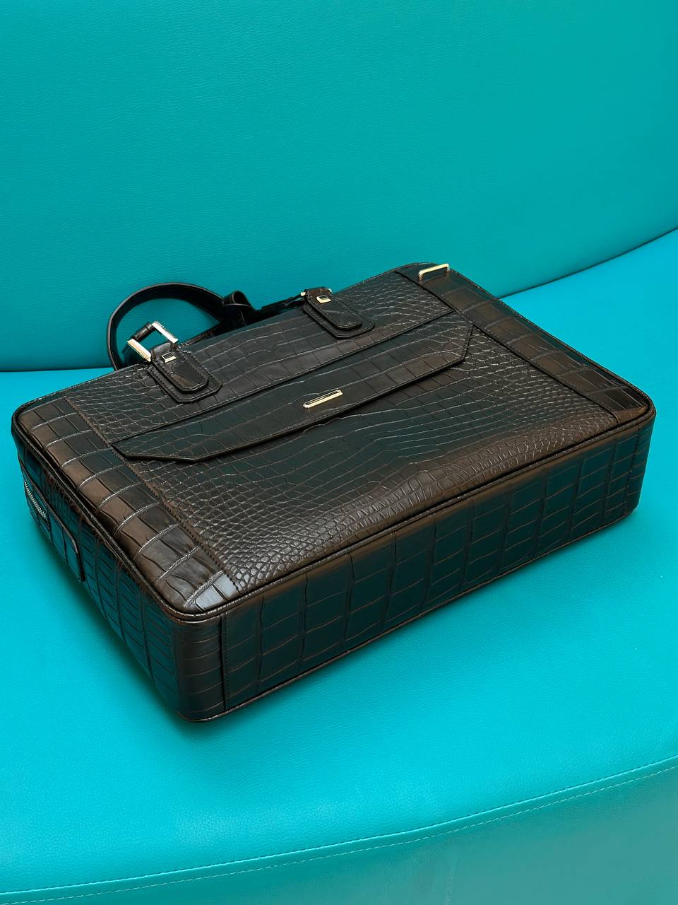 Роскошная деловая сумка из натуральной кожи крокодила. Вместительная модель люкс-класса для успешных мужчин.