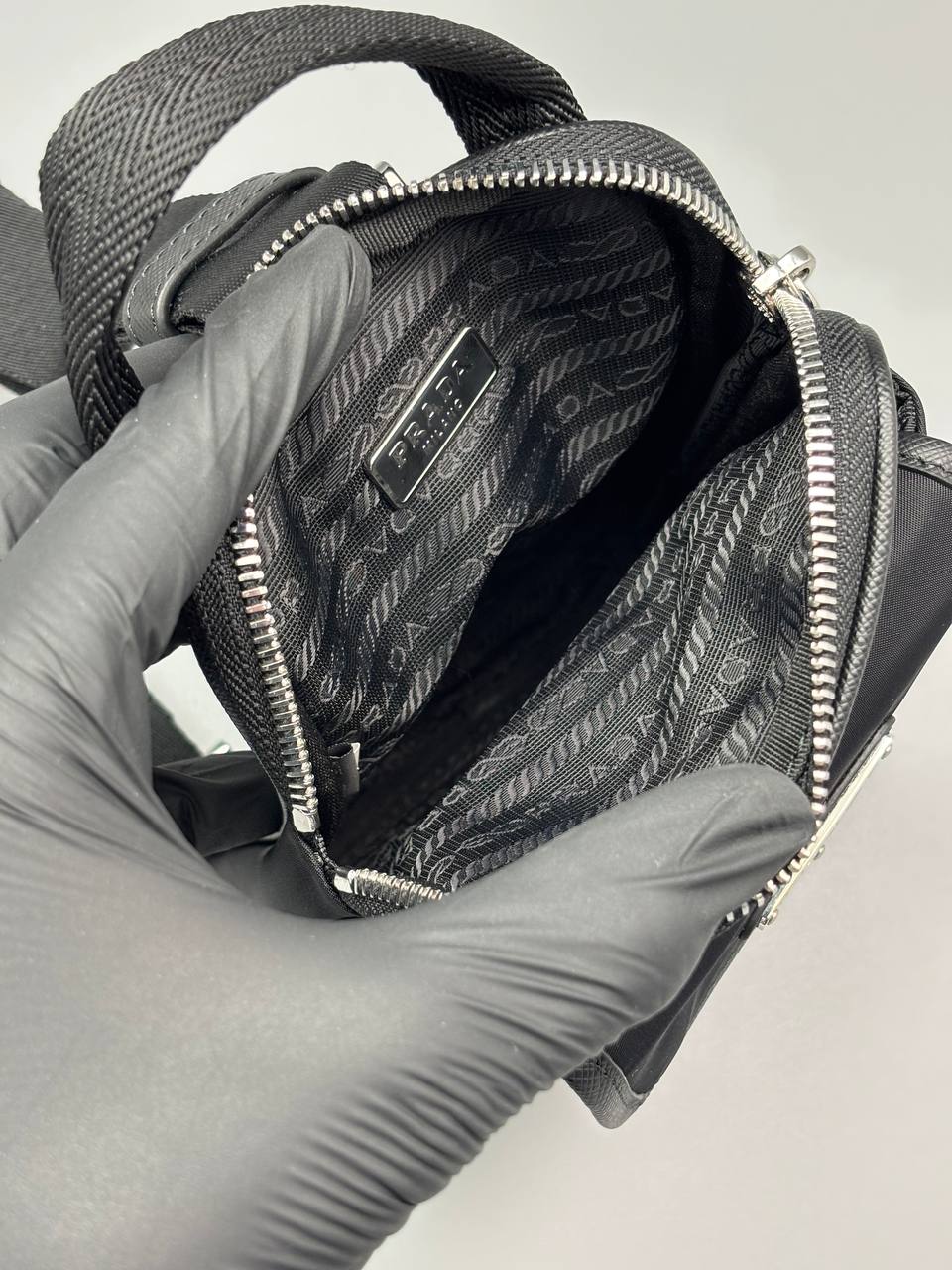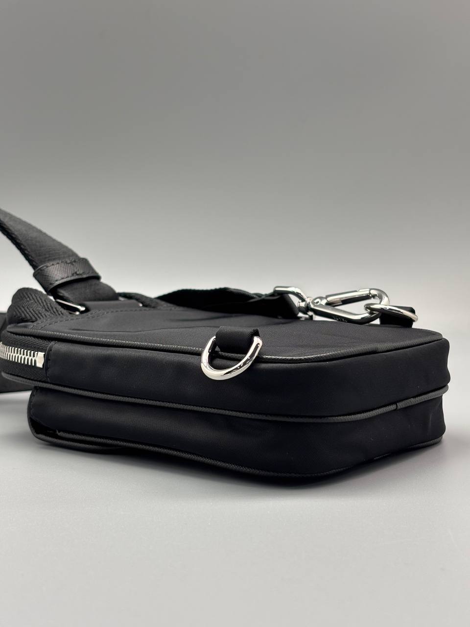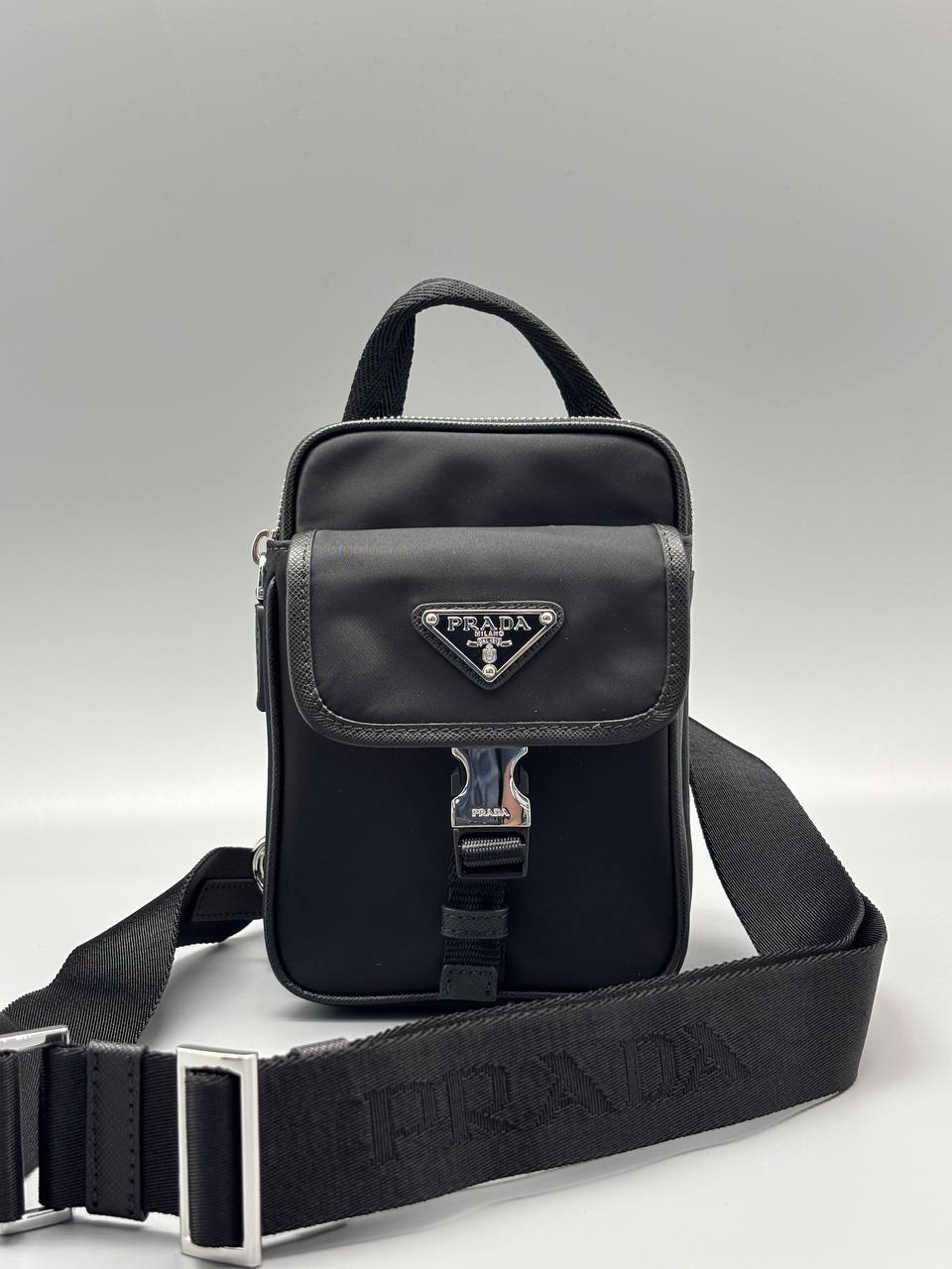 Компактная сумка-мессенджер из темно-синего нейлона. Минималистичный дизайн дополнен фирменным треугольным логотипом и функциональной застежкой-карабином в стиле милитари.