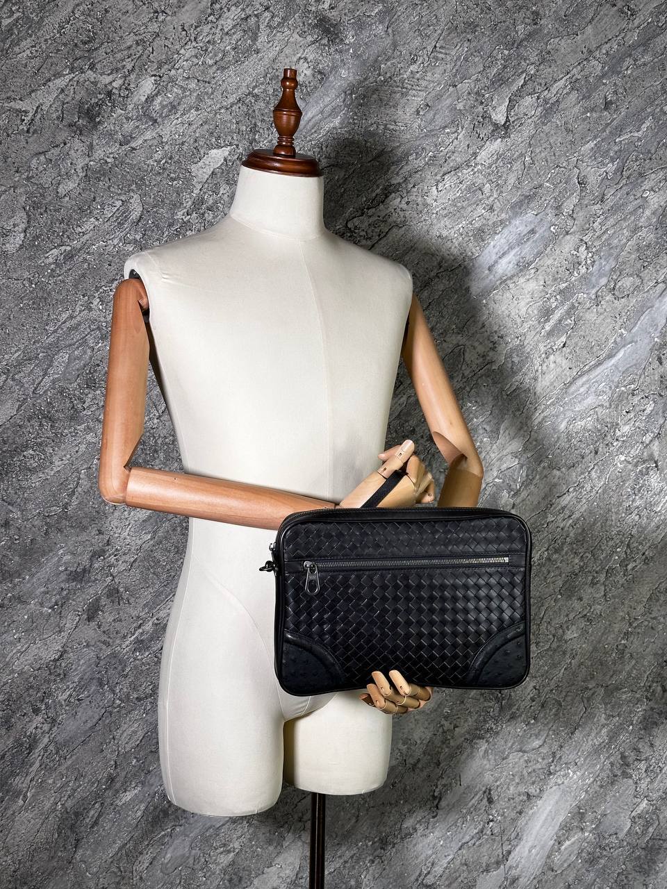 Классическая кожаная сумка-планшет с фирменным плетением Intrecciato - элегантный аксессуар для делового образа.