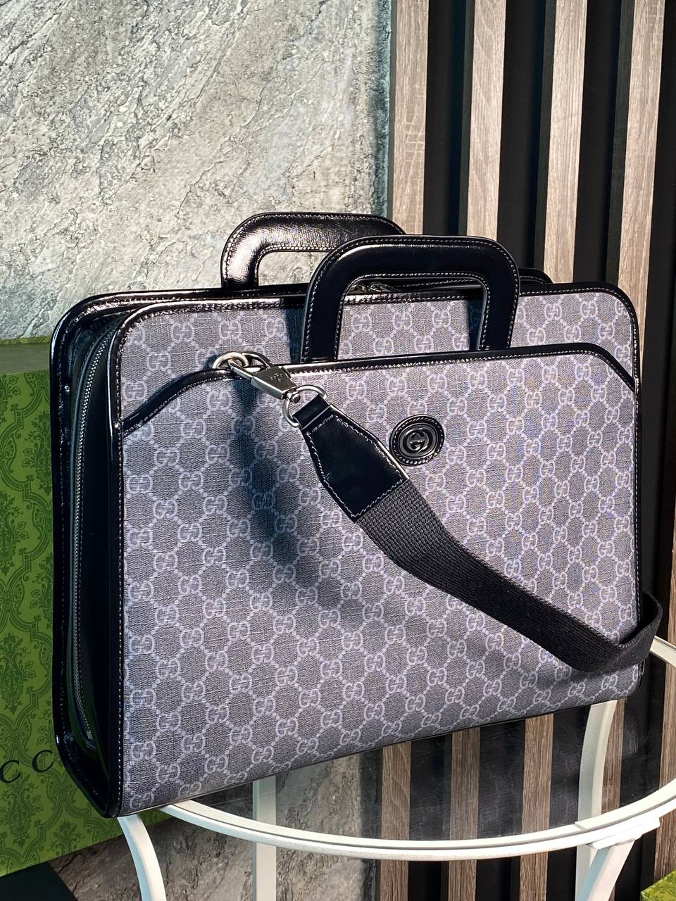 Стильная деловая сумка из прочной текстурированной канвы, украшенная знаковым логотипом и дополненная функциональными отделениями.
