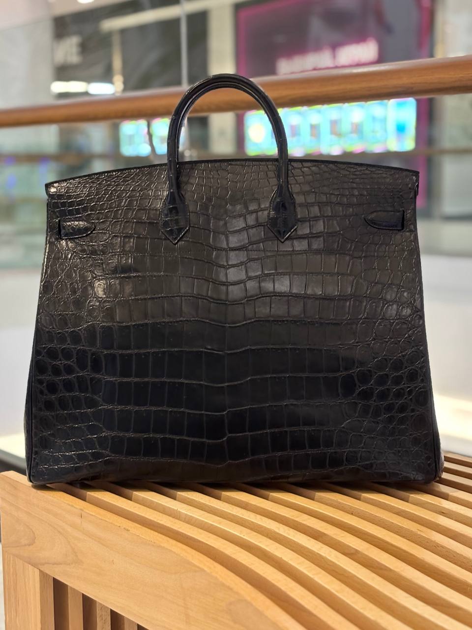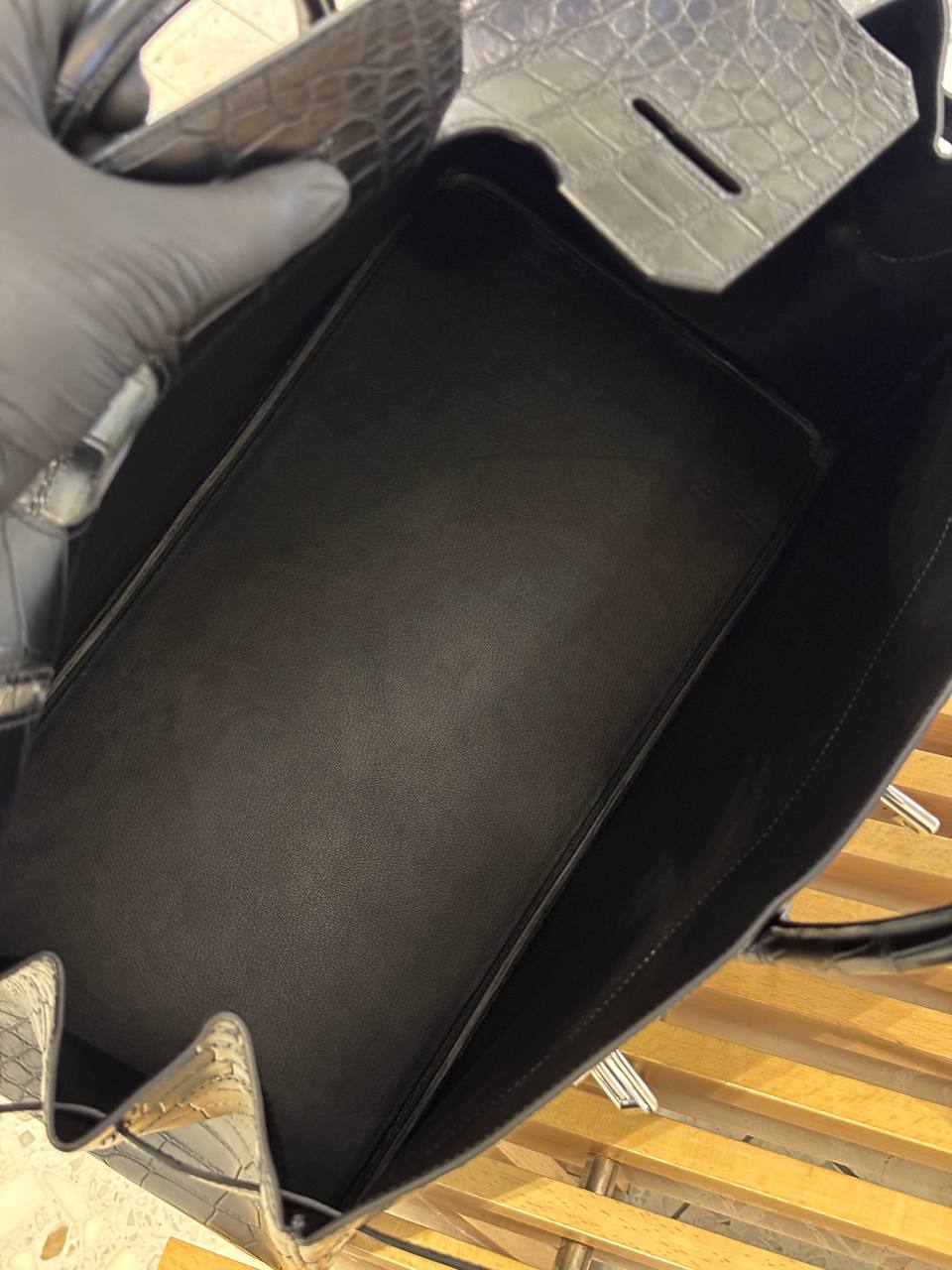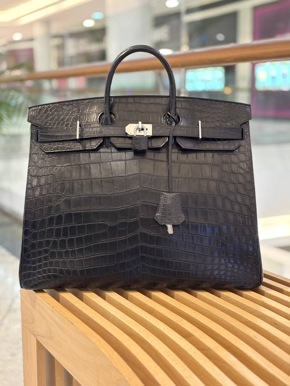 Глубокий глянцевый тон крокодиловой кожи, строгий силуэт и серебристая фурнитура — сумка, которая превращает повседневность в утонченное представление.