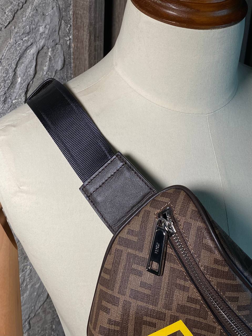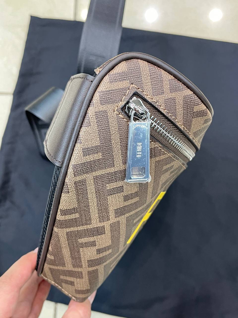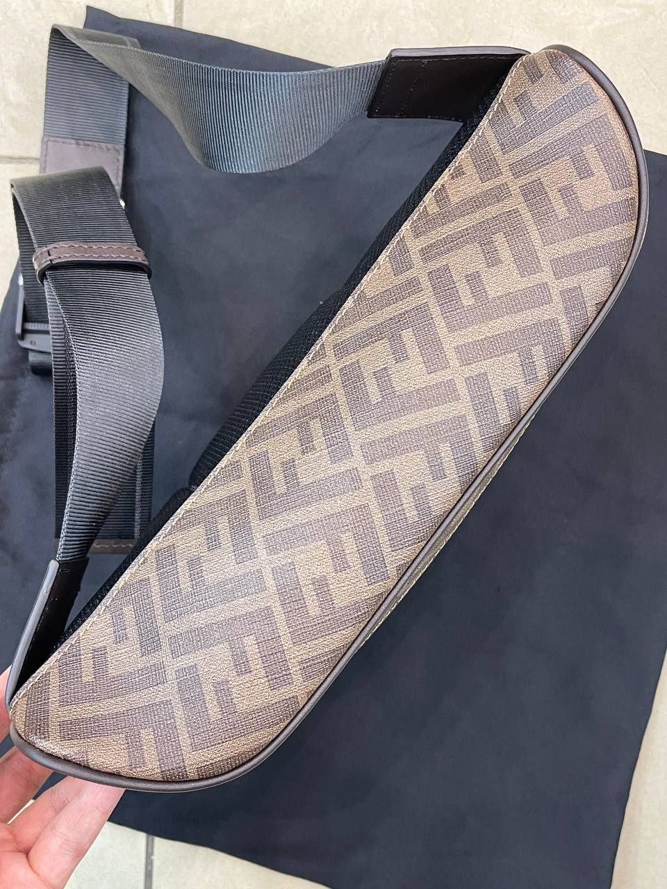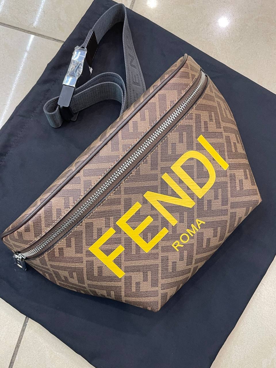 Функциональная и модная belt bag из прочного текстиля с культовым узором FF. Эффектная надпись бренда привлекает внимание. Незаменимый аксессуар для динамичной городской жизни.