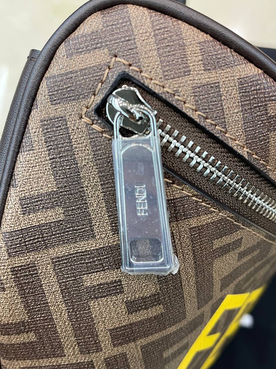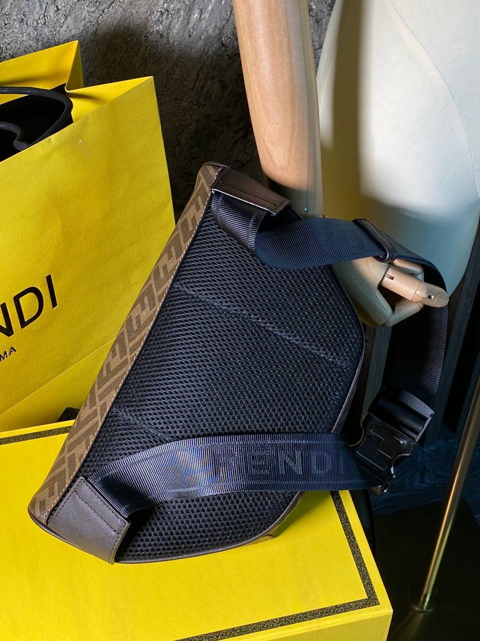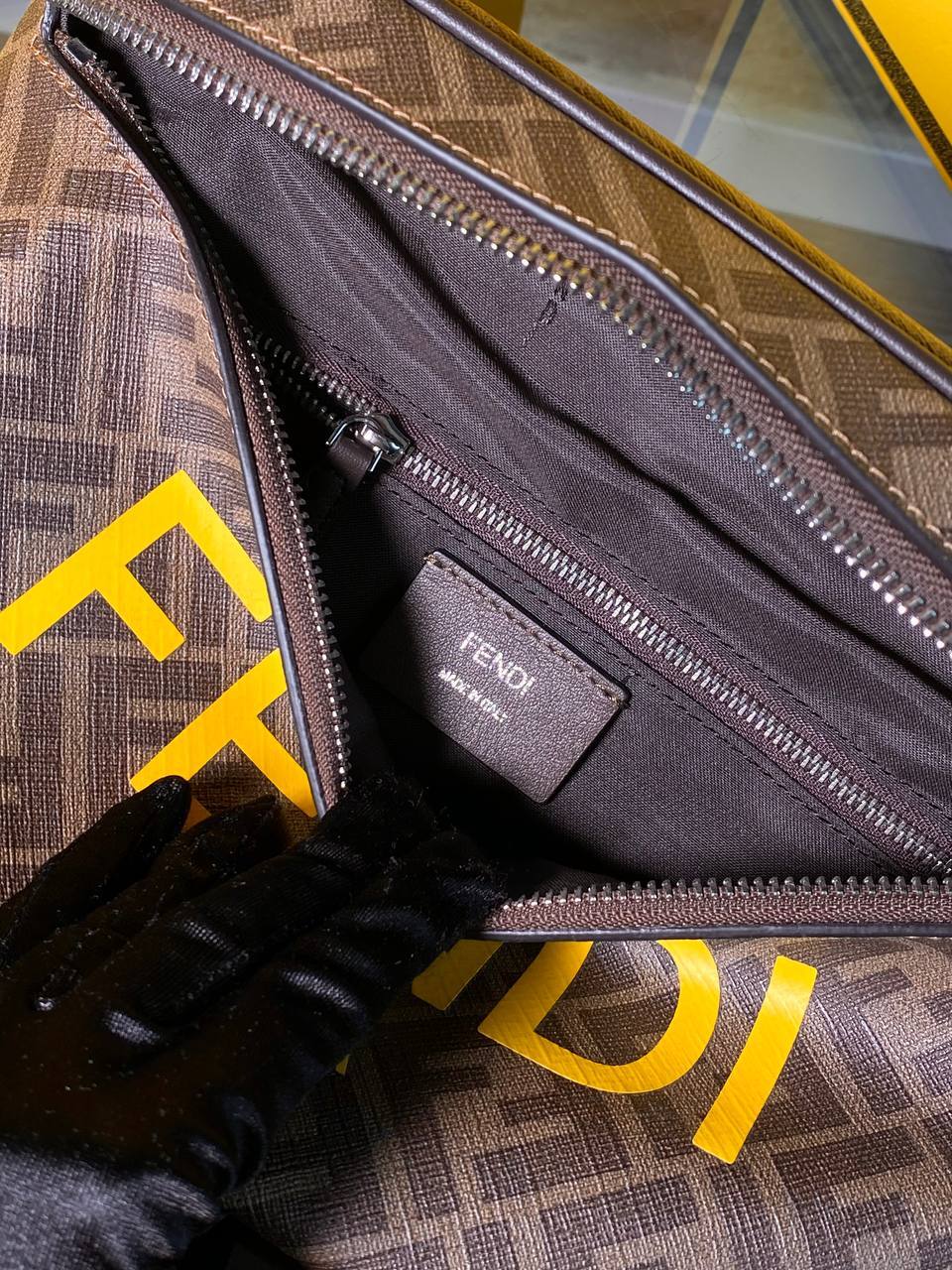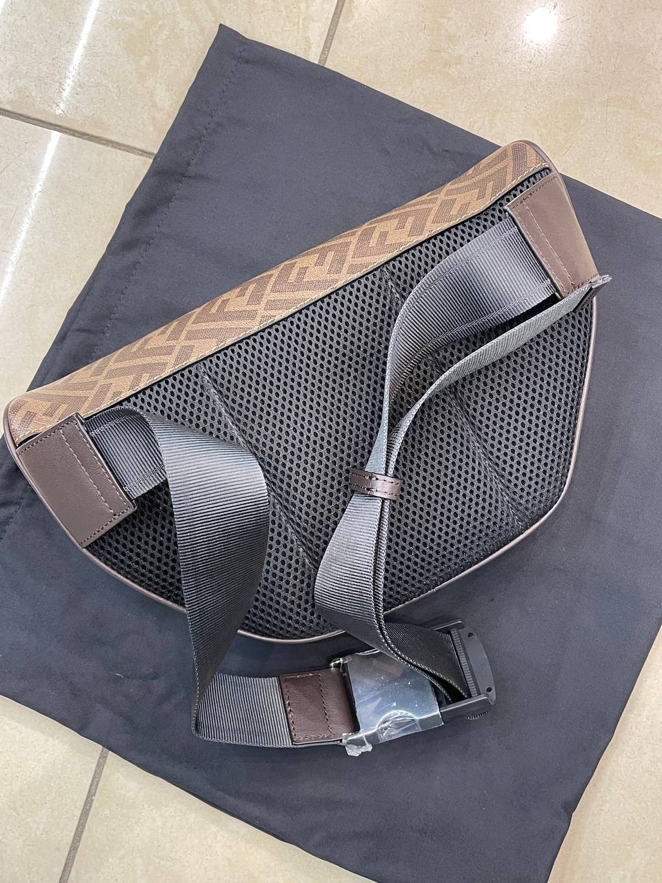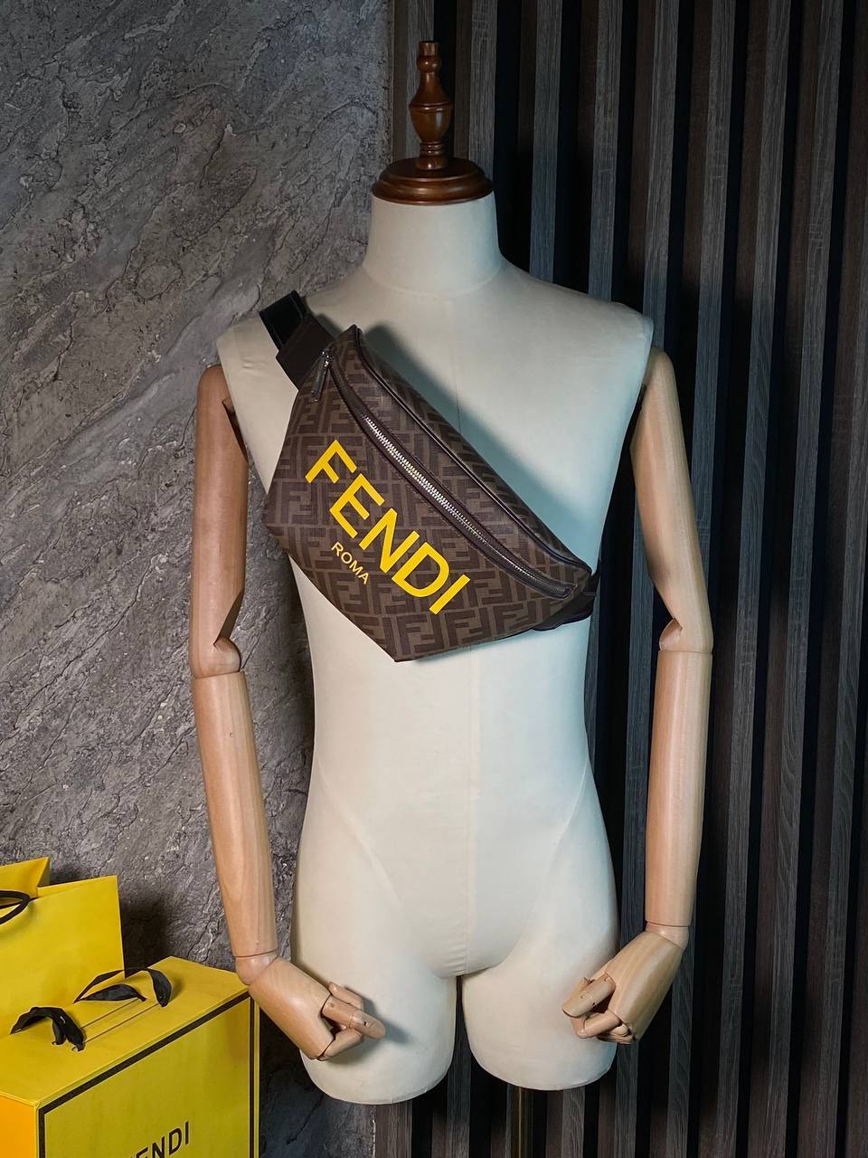 Функциональная и модная belt bag из прочного текстиля с культовым узором FF. Эффектная надпись бренда привлекает внимание. Незаменимый аксессуар для динамичной городской жизни.