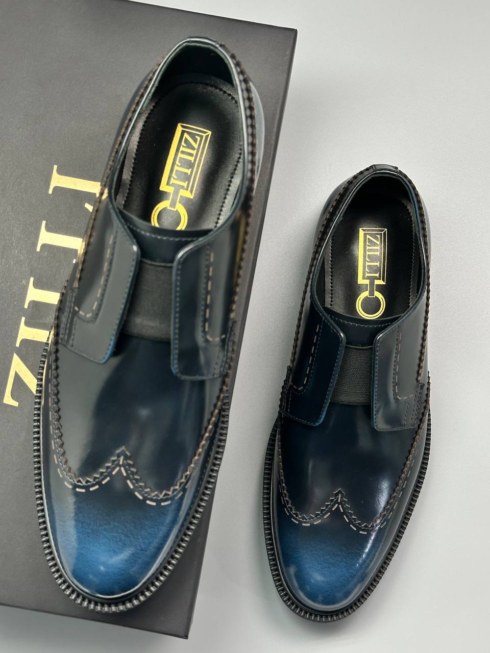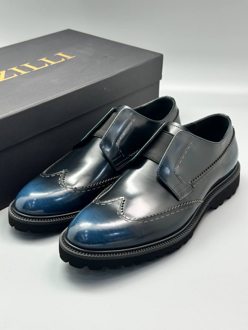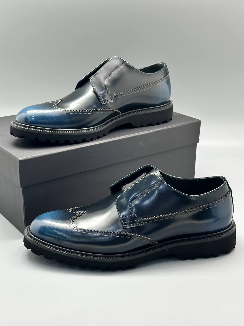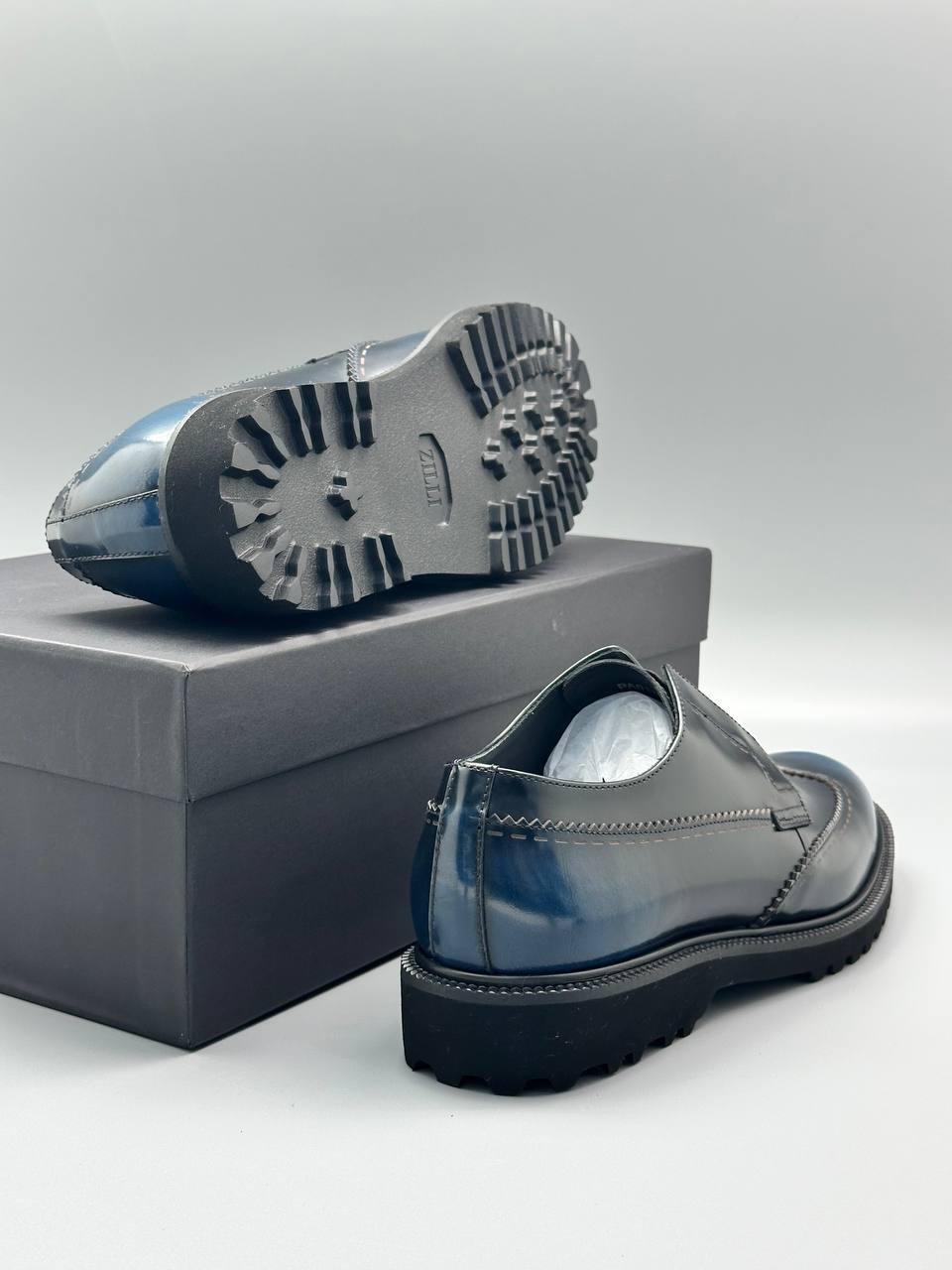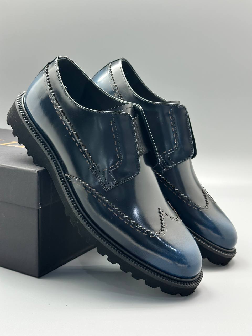 Строгий дизайн и премиальный материал – гладкая синяя кожа, рельефная подошва и аккуратная строчка. Стильный выбор для современных деловых образов.